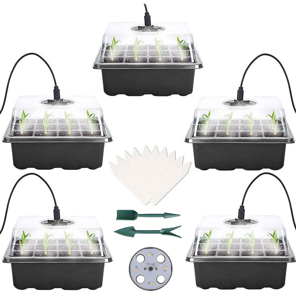 Complete LED Seed Starter Kit with Humidity Control - Set of 5 for Optimal Plant Growth