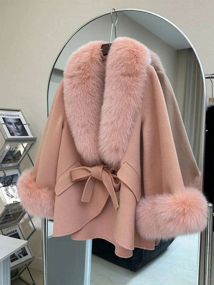 Luxurious Cashmere Wool Winter Coat with Genuine Fox Fur Detailing