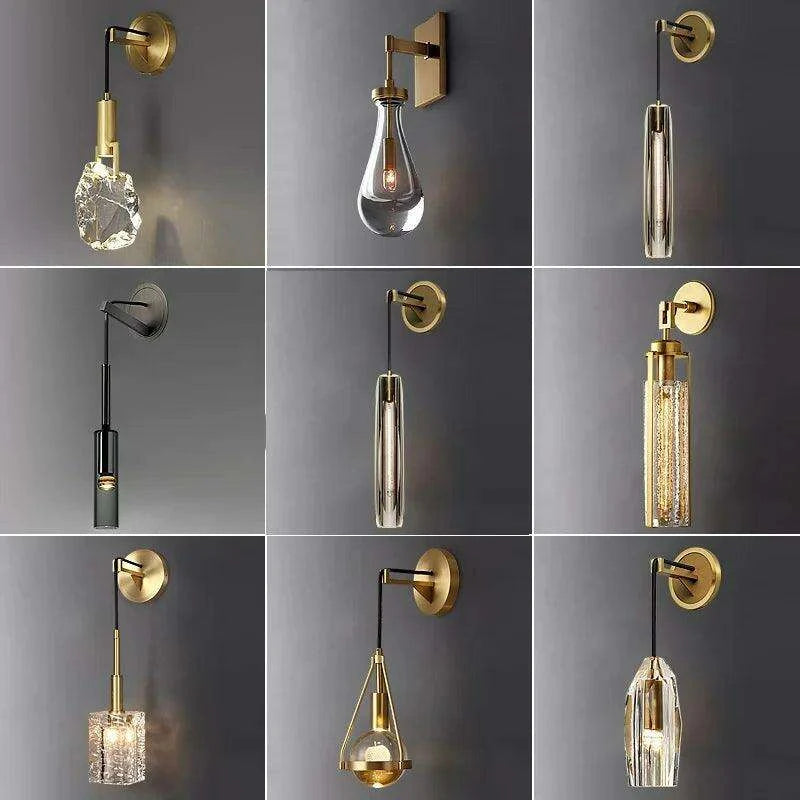 Luxurious Copper Finish Crystal Water Droplet LED Wall Light - Nordic Modern Design..