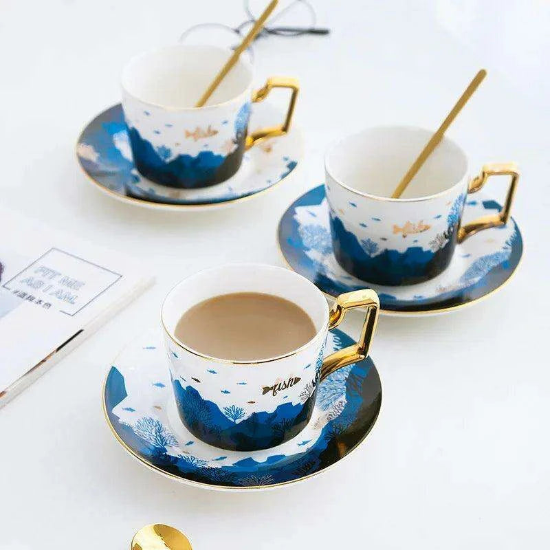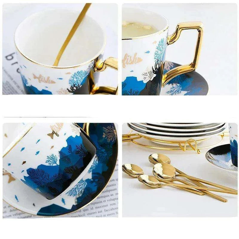 Indulge in the essence of European sophistication with our stunning Ceramic Coffee and Tea Set, accentuated by luxurious gold details. This exquisite 4-piece collection is designed to elevate your coffee and tea rituals, bringing a touch of opulence to your daily routine.