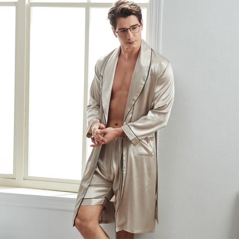 Elegant Silk Comfort Long-sleeved Men's Bathrobe Ensemble