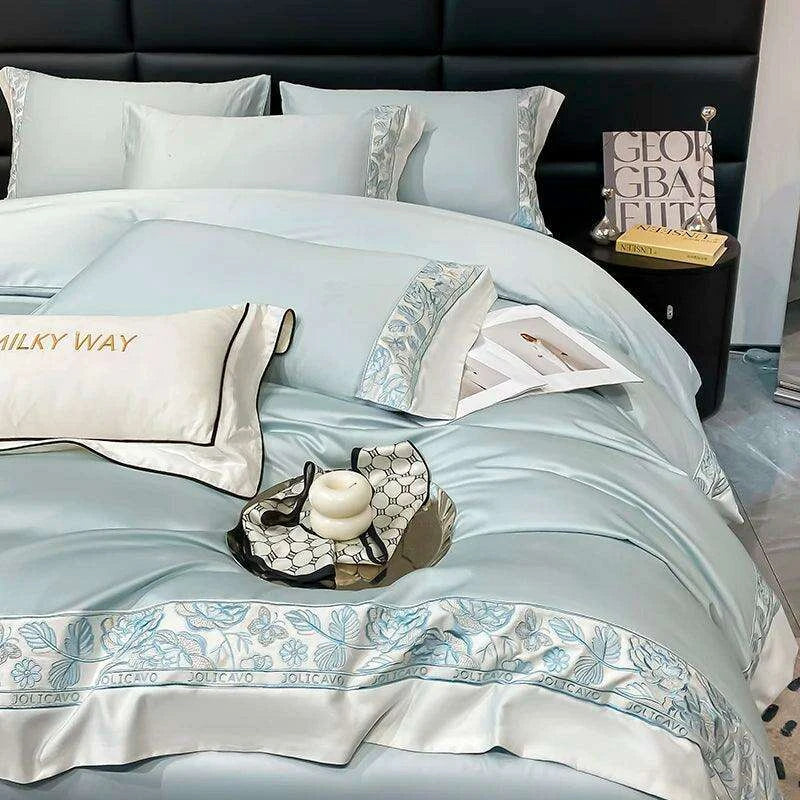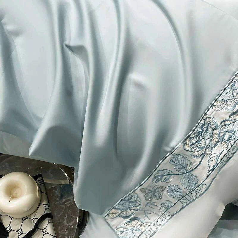 Luxury Rose Butterfly Embroidery 4-Piece Egyptian Cotton Bedding Set - Très Elite