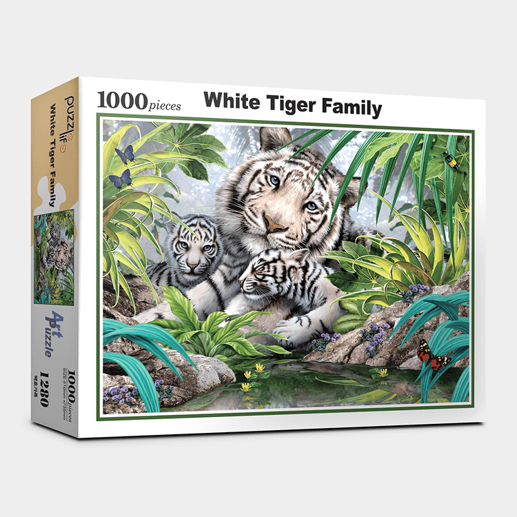 Embark on a captivating puzzling journey with the Majestic White Tiger Family 1000-Piece Puzzle Set. This beautiful puzzle set is thoughtfully crafted to provide an engaging experience for both seasoned puzzle enthusiasts and newcomers alike.