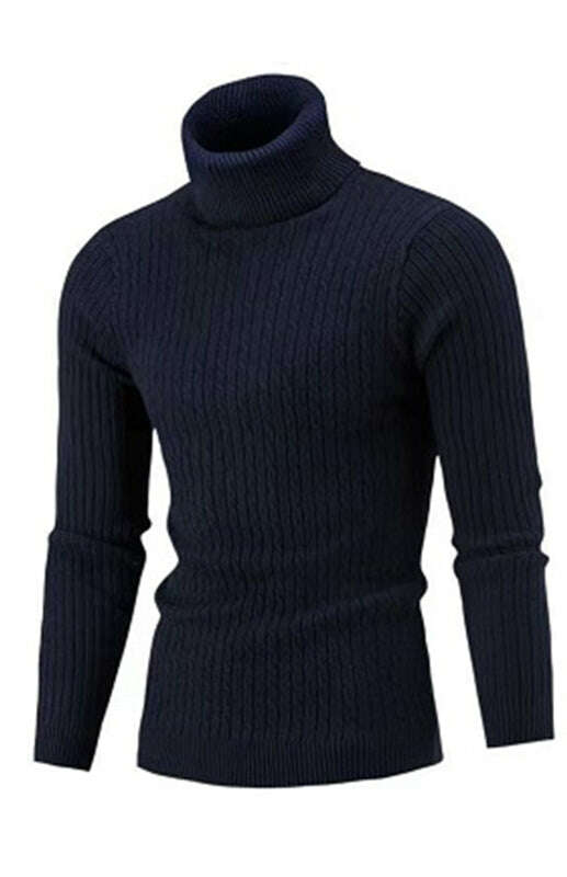 This Men's Turtleneck Knitted Pullover Sweater provides the perfect blend of style and comfort. Made from acrylic, this slim-fit sweater features a warm turtleneck and long regular sleeves. Its ribbed knit pattern enhances its casual yet refined look, making it ideal for fall and winter wear.