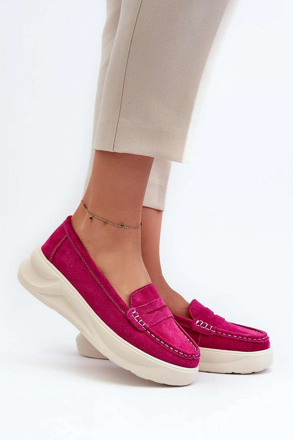 Women's moccasins made of natural suede. Set on a platform and a light anchor. Rounded nose pads. Perfect for many stylings, these moccasins are a combination of elegance and comfort. You should definitely have them in your closet!