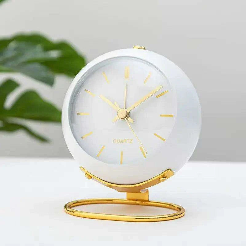 Modern Metal Frame Analog Alarm Clock with Soft Night Light – Chic Home Accent & Perfect Gift..
