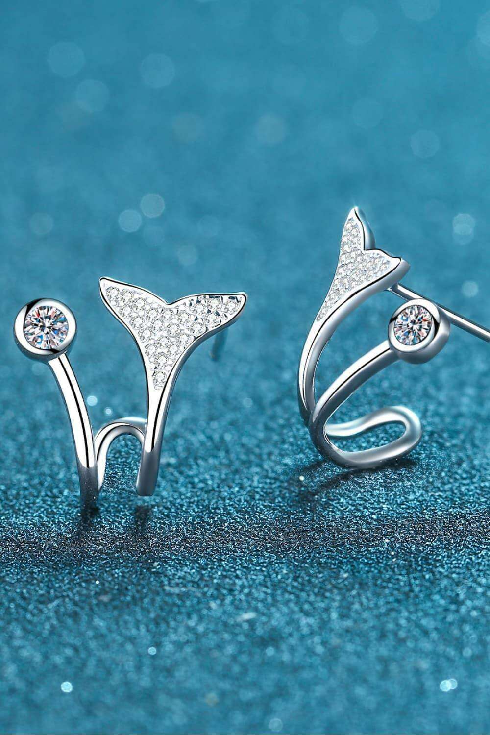 Elegant Rhodium-Plated Sterling Silver Fishtail Earrings with Dazzling Lab-Diamond Details