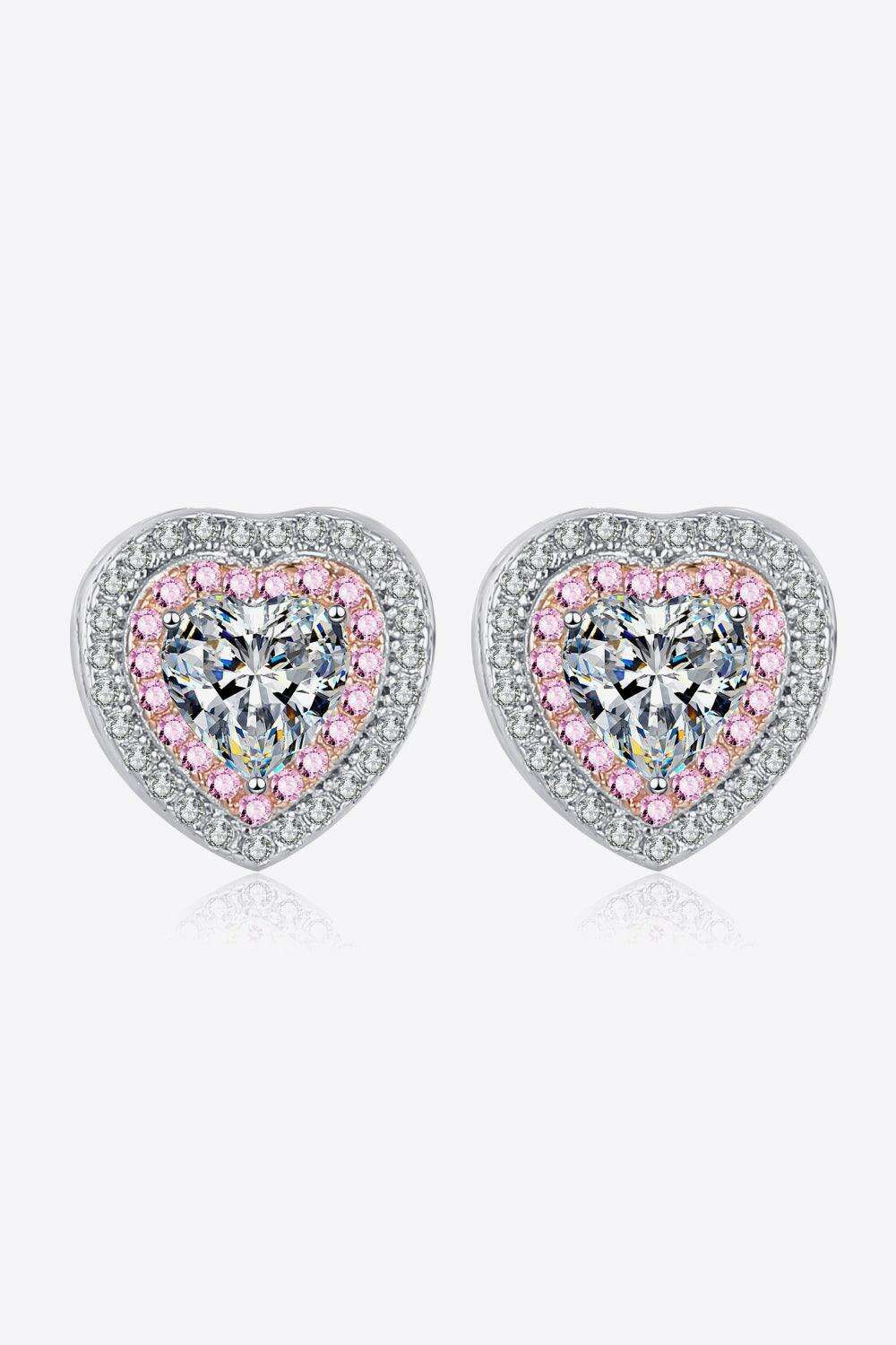 Radiant Heart Moissanite Stud Earrings: Classic Rhodium-Plated Beauty