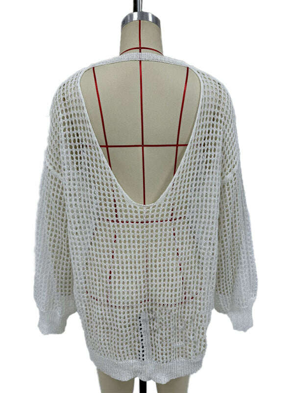 New Backless Knitted Loose Solid Color Fashion Bikini Beach Cover-up