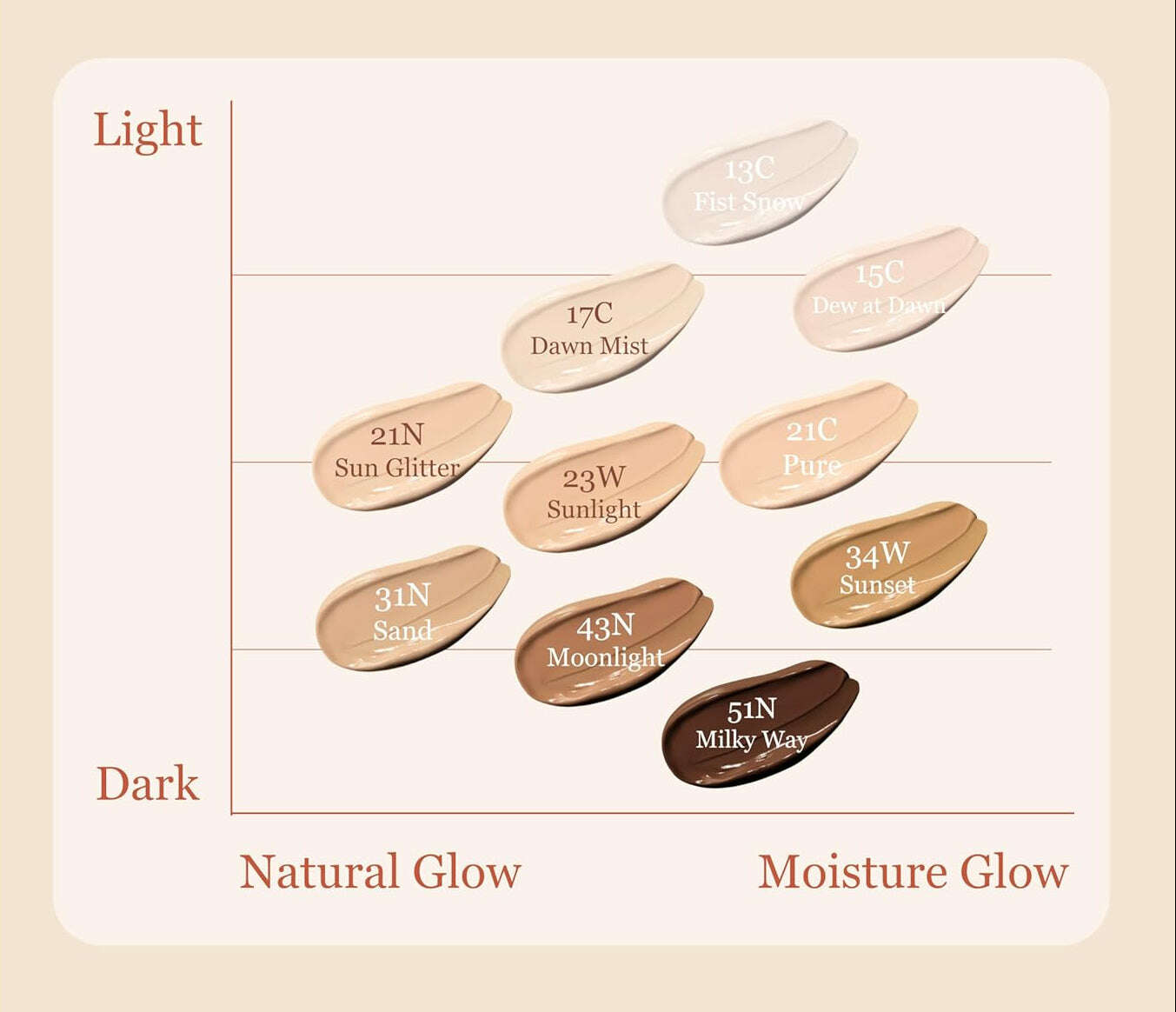 • Moisture and glow finish — one touch delivers smooth adhesion and a radiant, youthful glow.