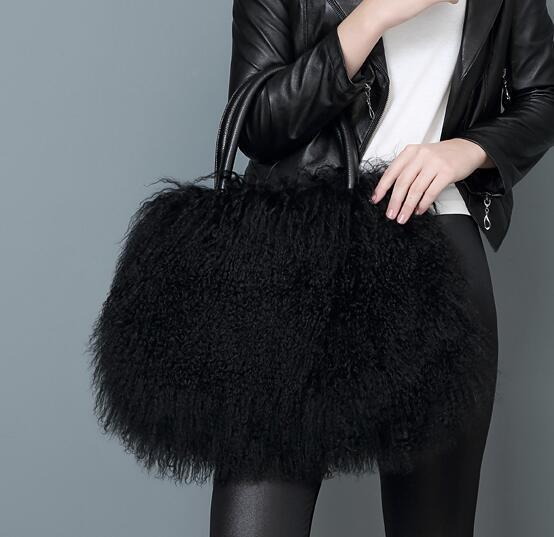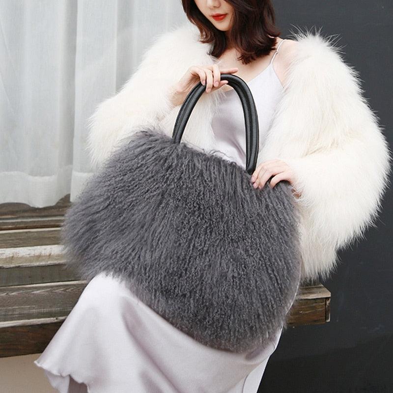 Opulent Wool & Fur Handbags: Exquisite Blend of Mongolian, Australian, and Tibet Lamb Textures