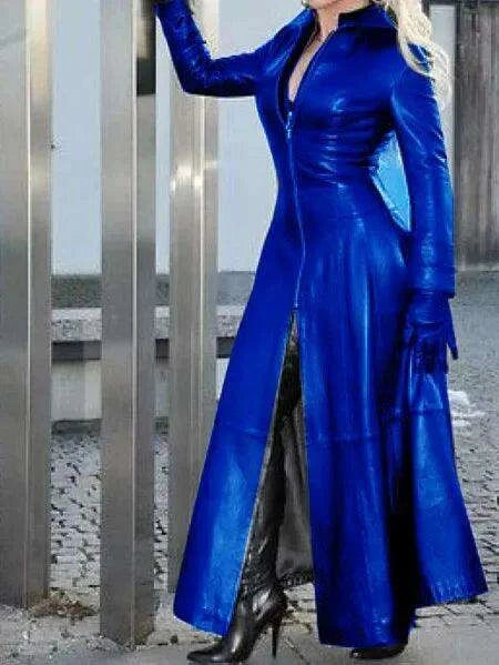 Plus Size Edgy Cyberpunk Women's Leather Biker Jacket - Stylish Long Lapel Coat in Solid Hues - Très Elite