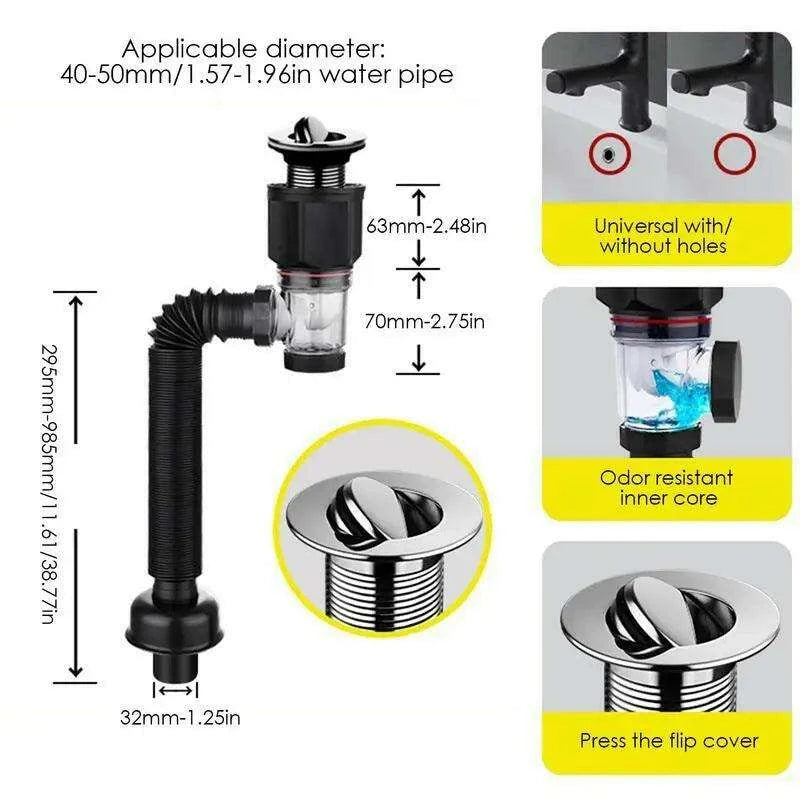 - Prevent Clogs: Our innovative design effectively stops clogged drain pipes, prevents water backflow, and eliminates unpleasant odors.