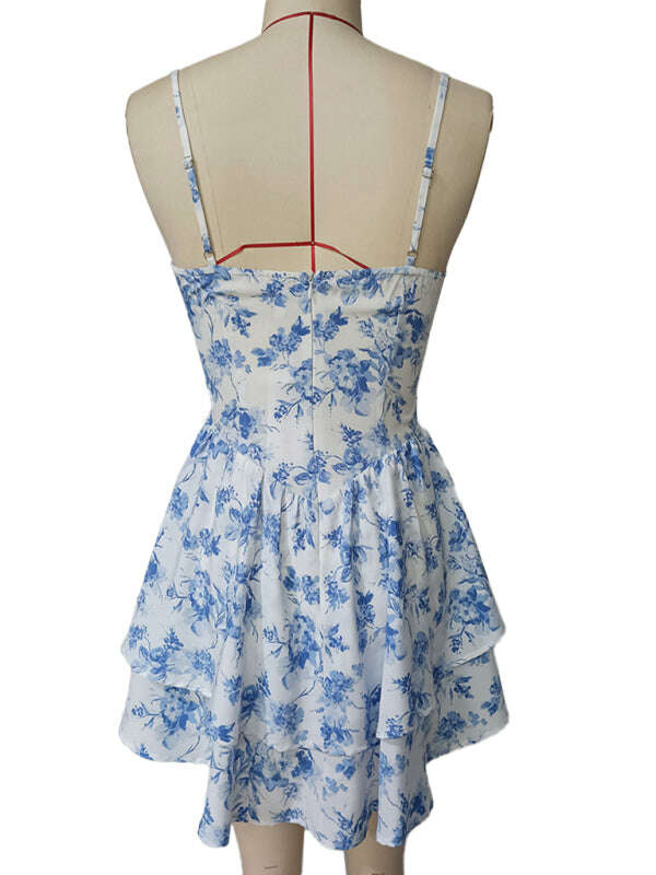 Printed Deep V Sleeveless Dress Strapless Cake Skirt