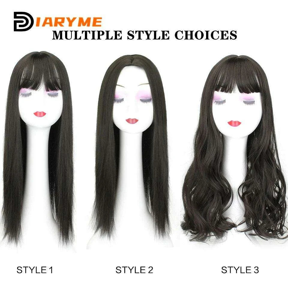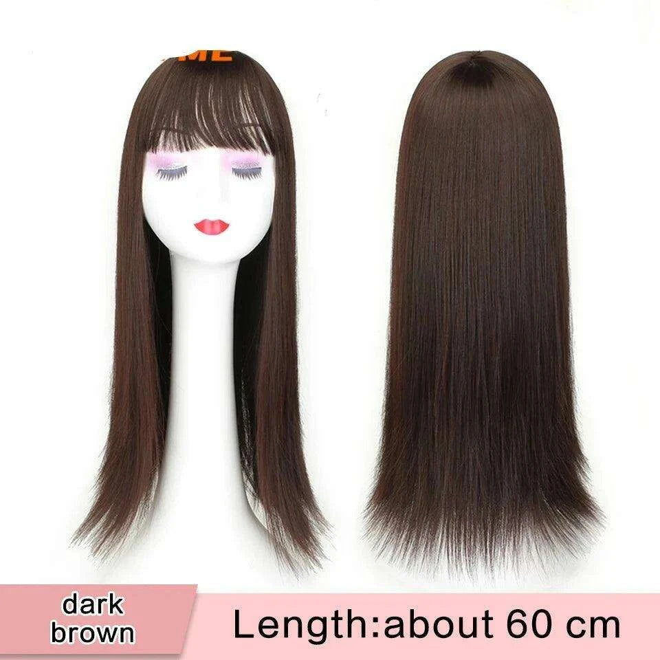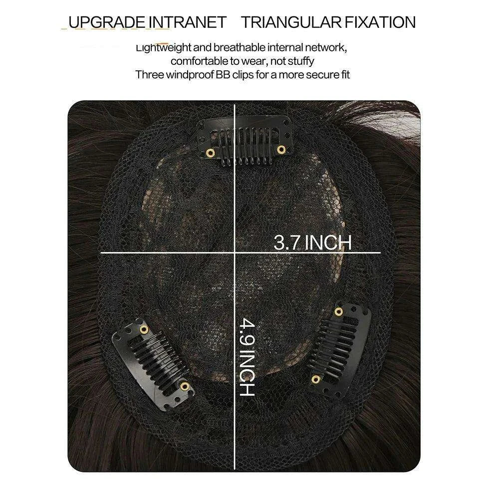 Whether you're looking to enhance your volume, cover those pesky gray strands, or simply want to change your hairstyle on a whim, the Invisible Clip-In Bangs Topper is your go-to solution. Achieve a natural and flawless finish every time you wear it, standing out from the competition with its innovative design and high-quality materials. Choose our topper for a stylish and effortless transformation.