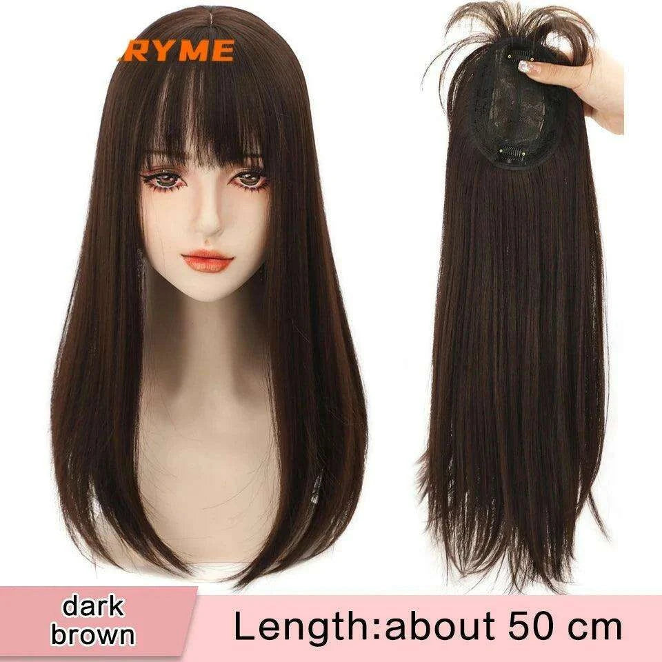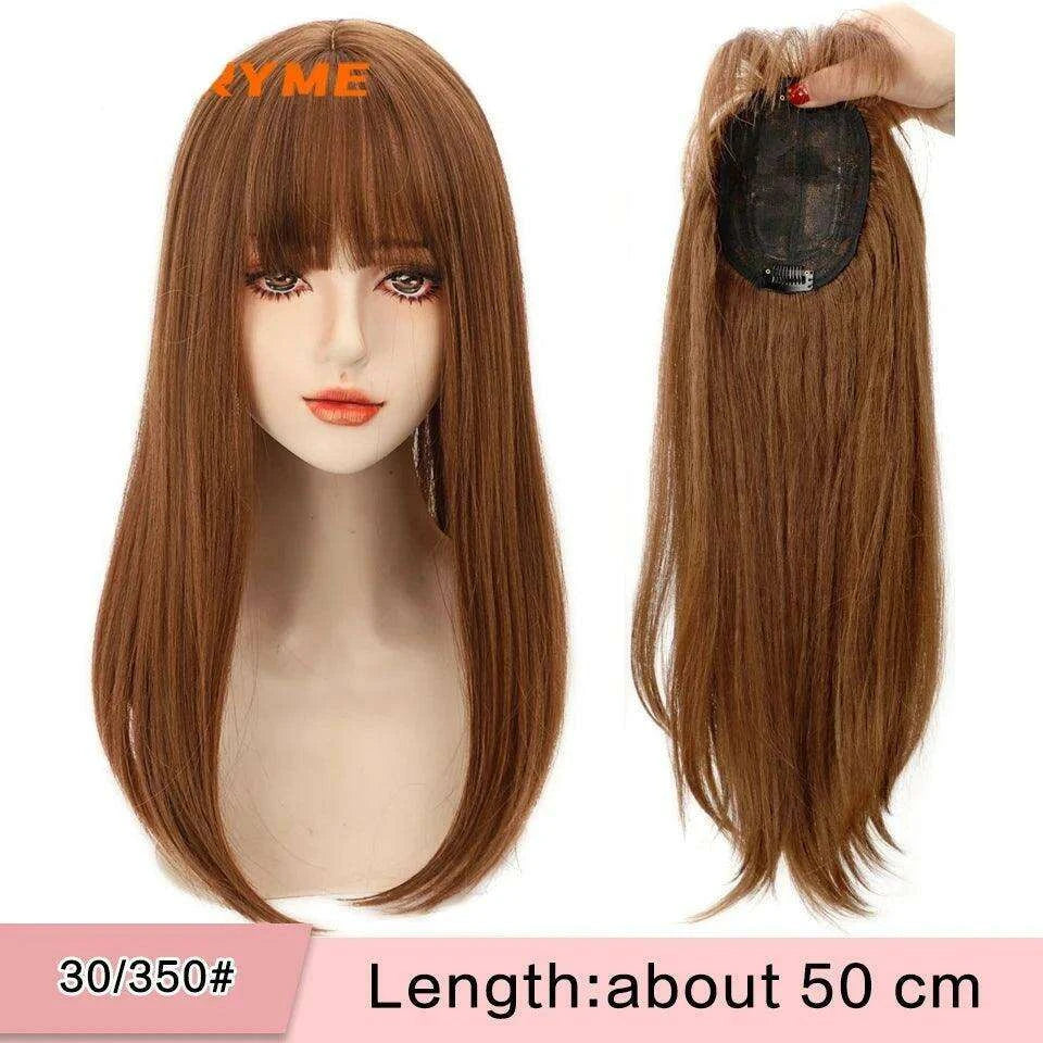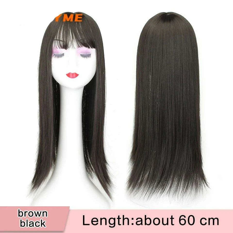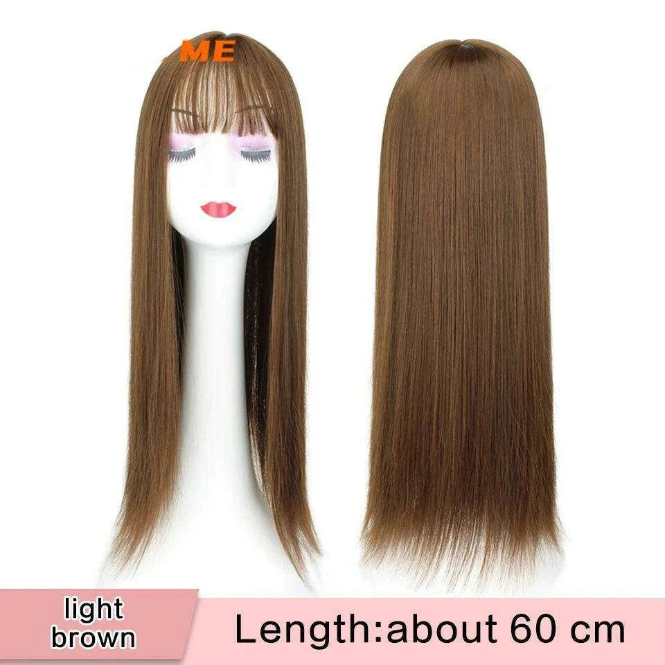 Whether you're looking to enhance your volume, cover those pesky gray strands, or simply want to change your hairstyle on a whim, the Invisible Clip-In Bangs Topper is your go-to solution. Achieve a natural and flawless finish every time you wear it, standing out from the competition with its innovative design and high-quality materials. Choose our topper for a stylish and effortless transformation.