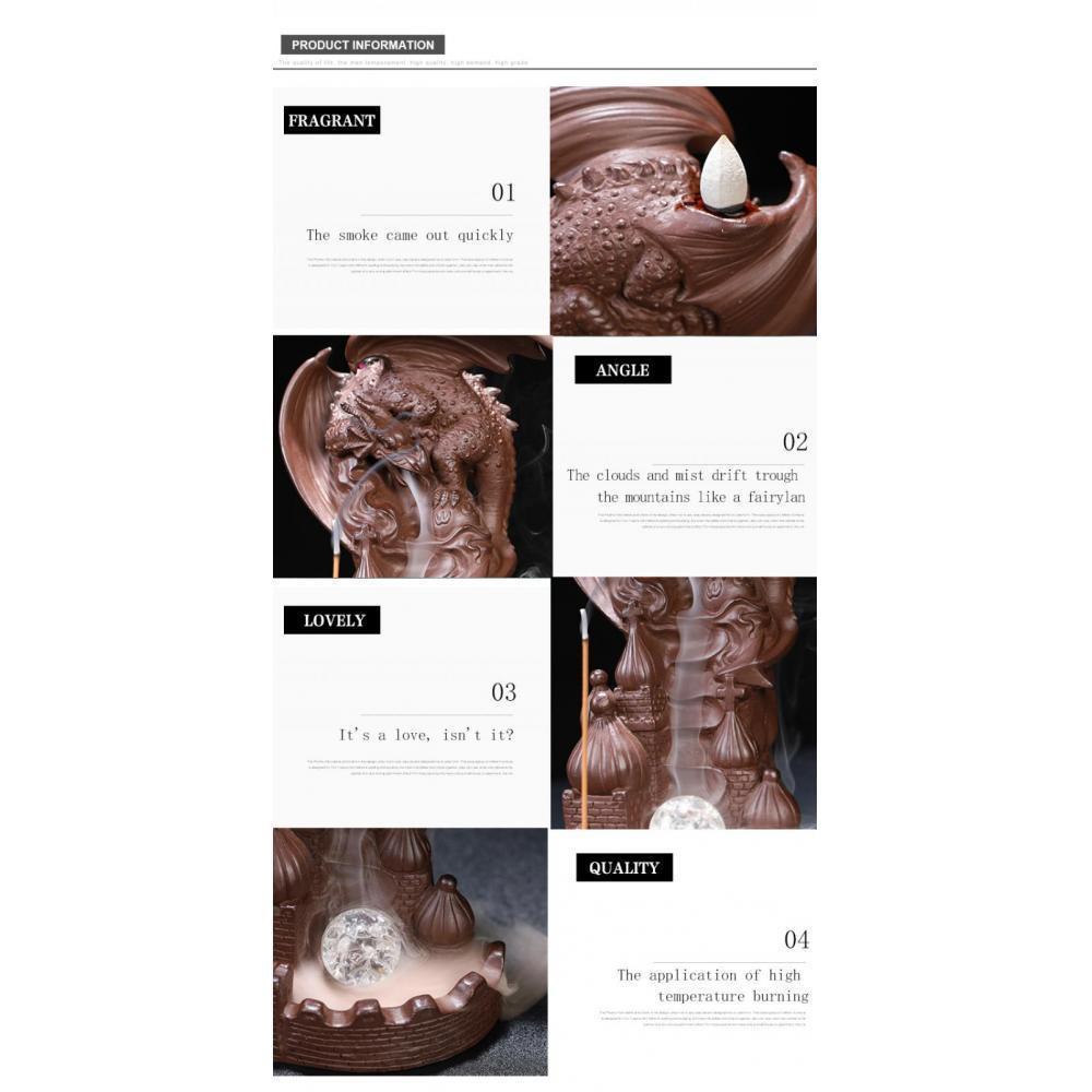 Experience the perfect blend of beauty and practicality with the Dragon Serenity Waterfall Incense Burner Set. This premium piece not only elevates your living space but also fosters a calming atmosphere as the smoke cascades elegantly downwards. With 20 assorted incense cones included, each scent offers a unique way to unwind and explore your senses. Enhance your home's tranquility and serenity—this stunning incense burner set is the perfect addition to your lifestyle.