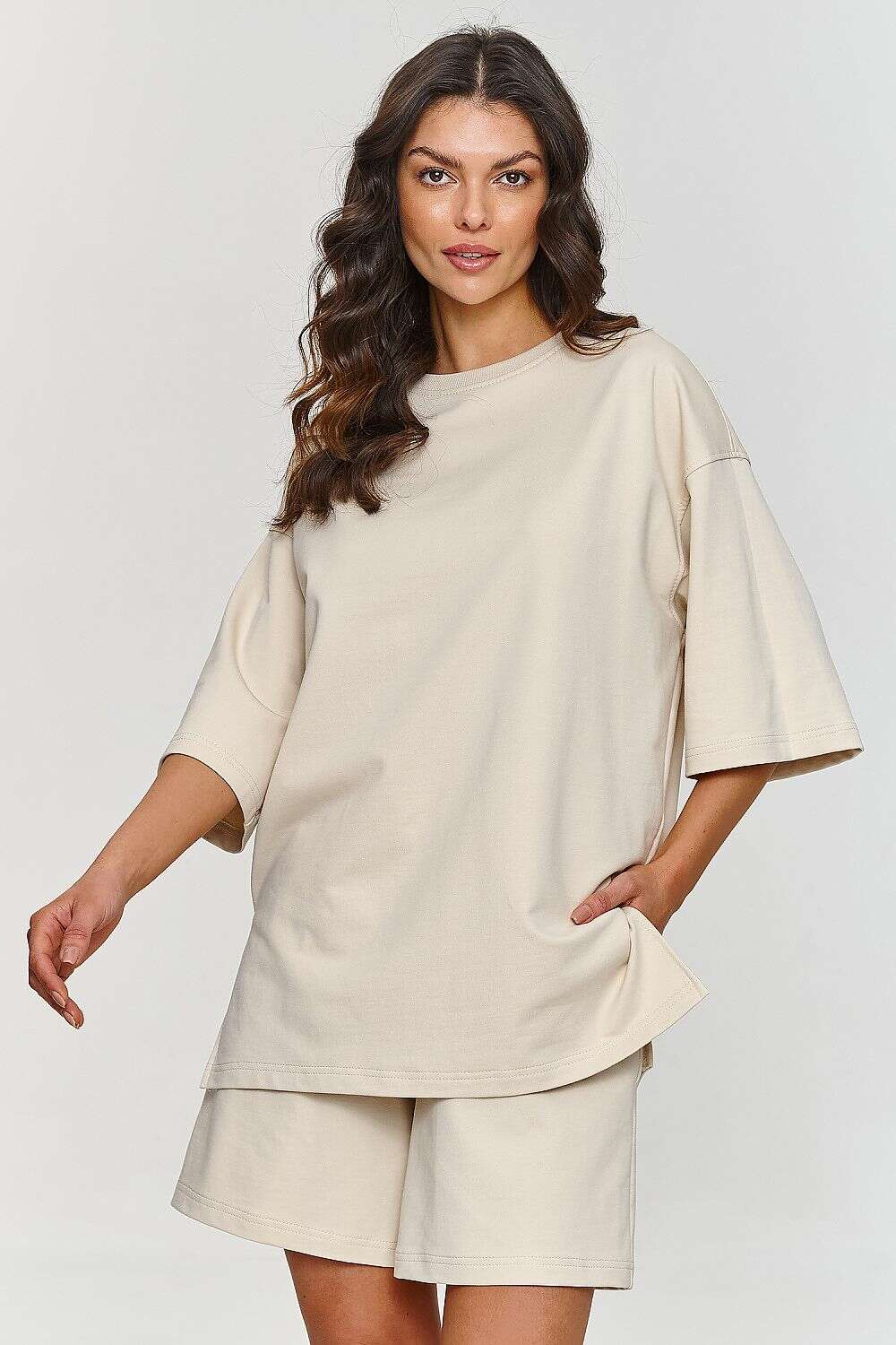 This comfortable tracksuit set is the perfect solution for women who value comfort and timelessness in their everyday stylings. The oversized cut of the t-shirt guarantees full freedom of movement and a fashionable look. The short sleeves and classic round neckline make it an ideal casual base for everyday stylings. The shorts have an elastic waistband, ensuring a proper fit, and the side pockets accentuate their functionality. The loose fit of the shorts and wide legs provide full freedom of movement, while the shorter length makes them perfect for warm days. The simple yet stylish tracksuit set combines minimalist design with comfort, creating a great option for everyday stylings. It's a must-have for relaxing at home, meeting friends, or short trips. However, its versatility also allows it to be used for various physical activities.