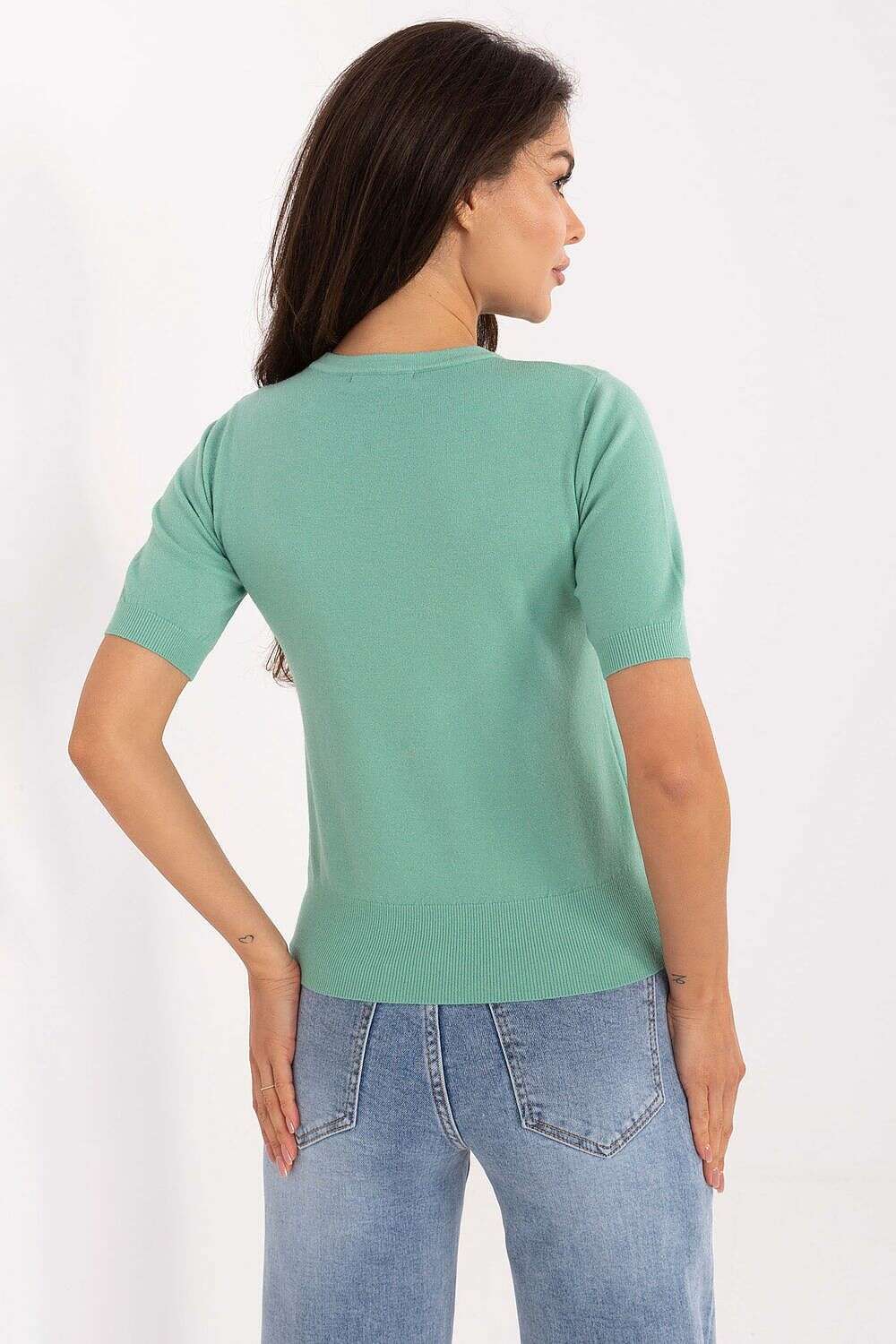 Classic women's sweater in casual style, perfect for everyday wear and work. Made of soft and stretchy blend of viscose, elastane and nylon, which ensures comfort and a perfect fit to the silhouette. A model of standard length with short sleeves and a round neckline is a universal proposition for every season. Maintained in a smooth, dominant pattern, it will work great in simple, everyday outfits as well as more elegant office stylizations.