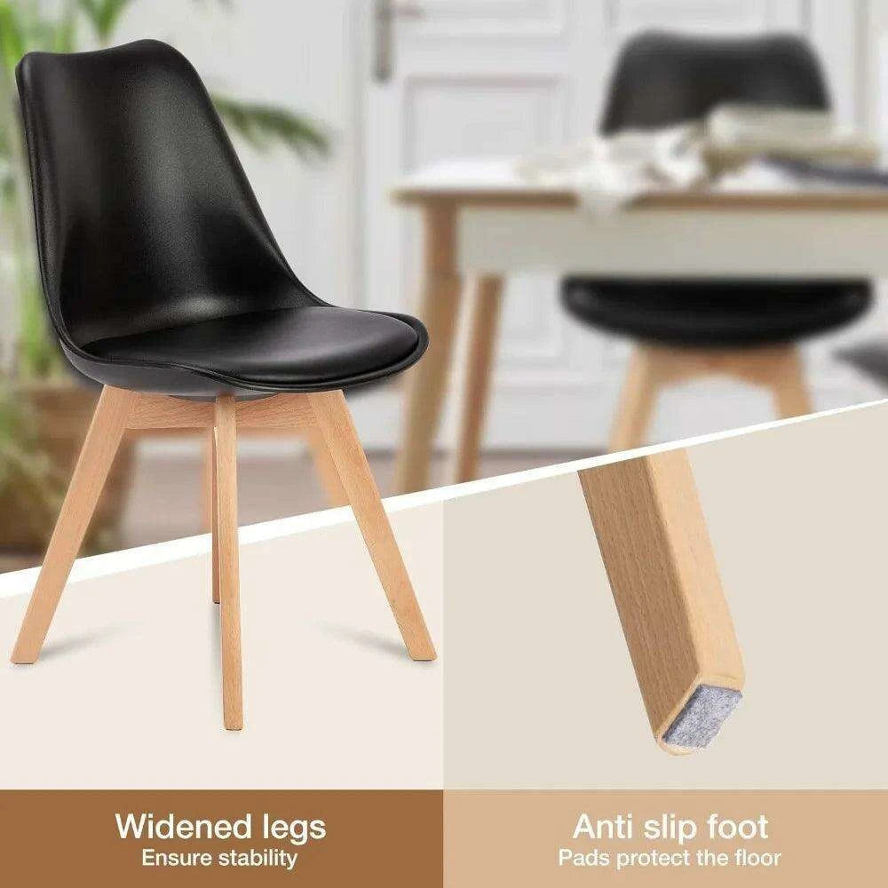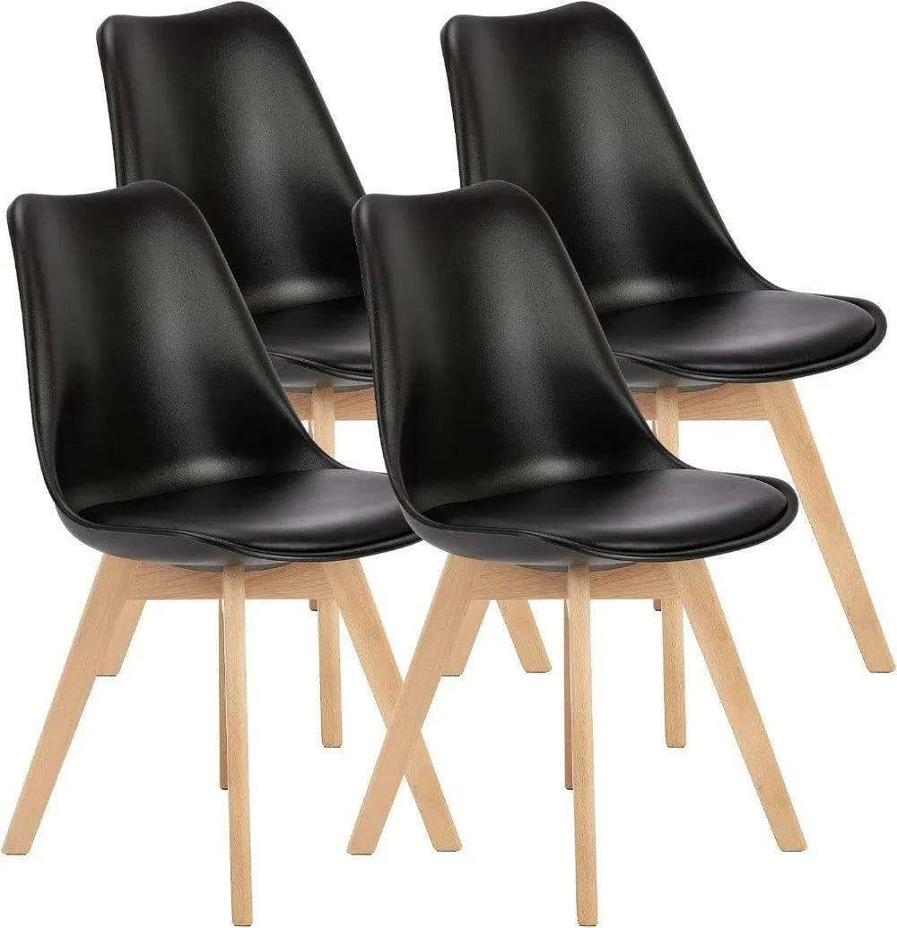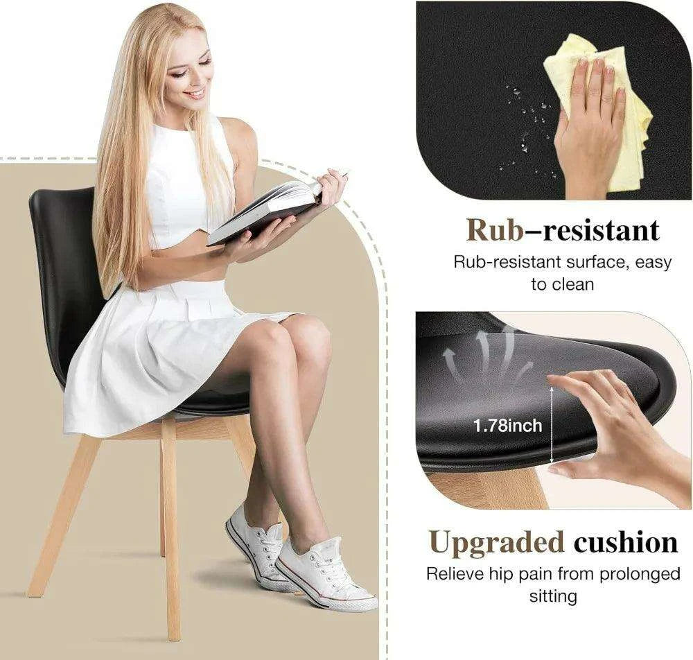 Chic Mid-Century Modern Dining Chair Set: 4 Luxurious Leather-Cushioned Seats