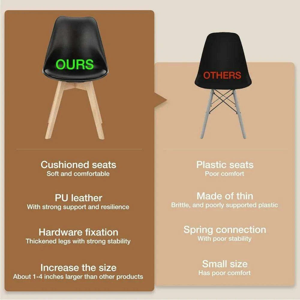 What sets these chairs apart is not just their stylish design but their commitment to comfort and safety. The combination of sturdy wood construction and luxurious leather ensures that you are investing in durability as well as aesthetic appeal.