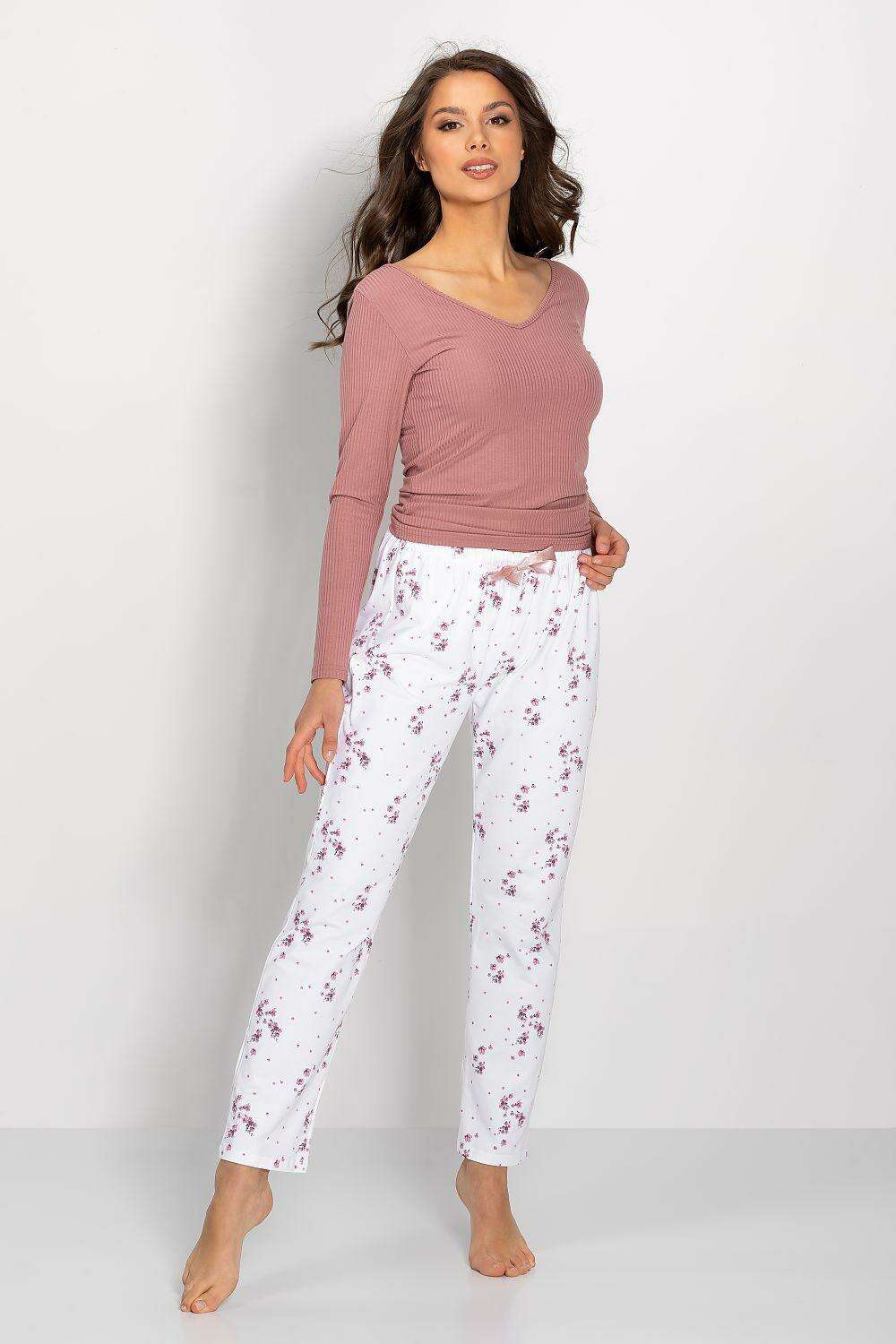• Stylish Pants: The coordinating long pants are tastefully adorned with a chic print, complemented by a decorative bow at the waist, ensuring a flattering fit while prioritizing comfort.