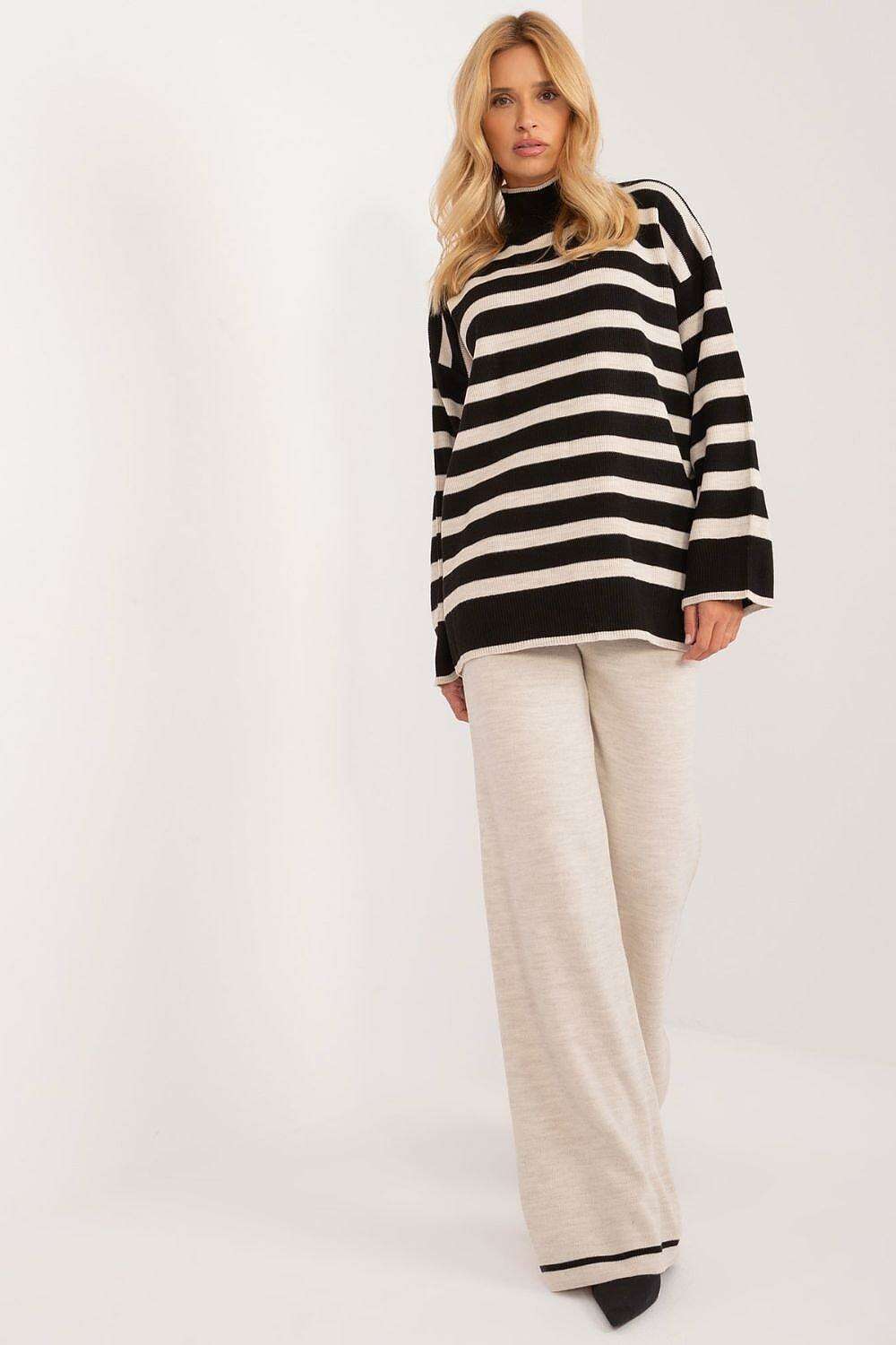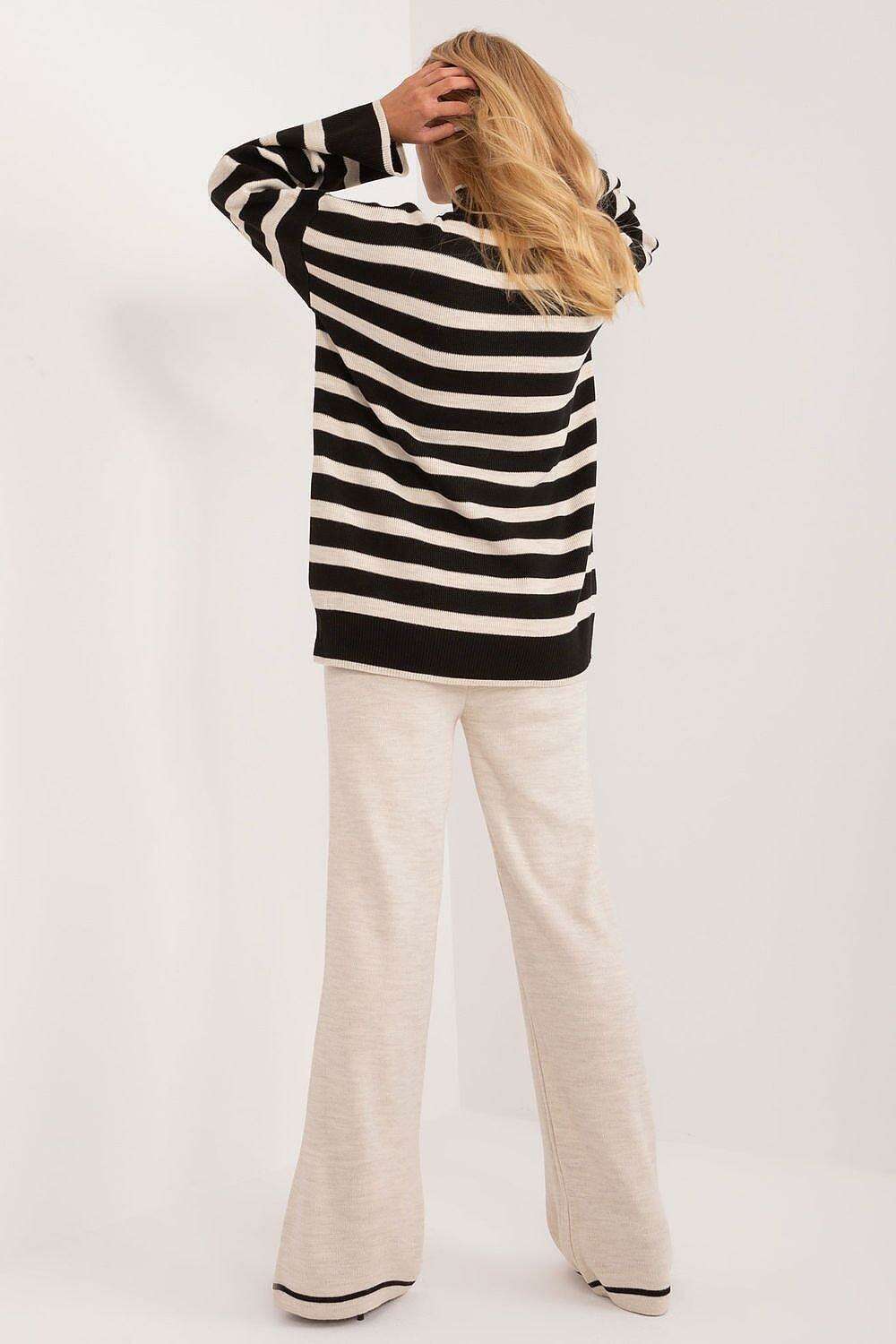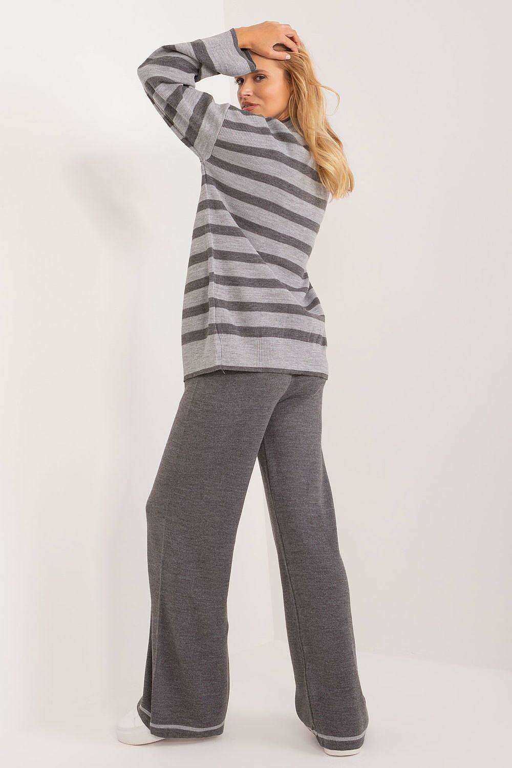 Sophisticated Striped Ribbed Knit Outfit with High-Waisted Trousers - Très Elite