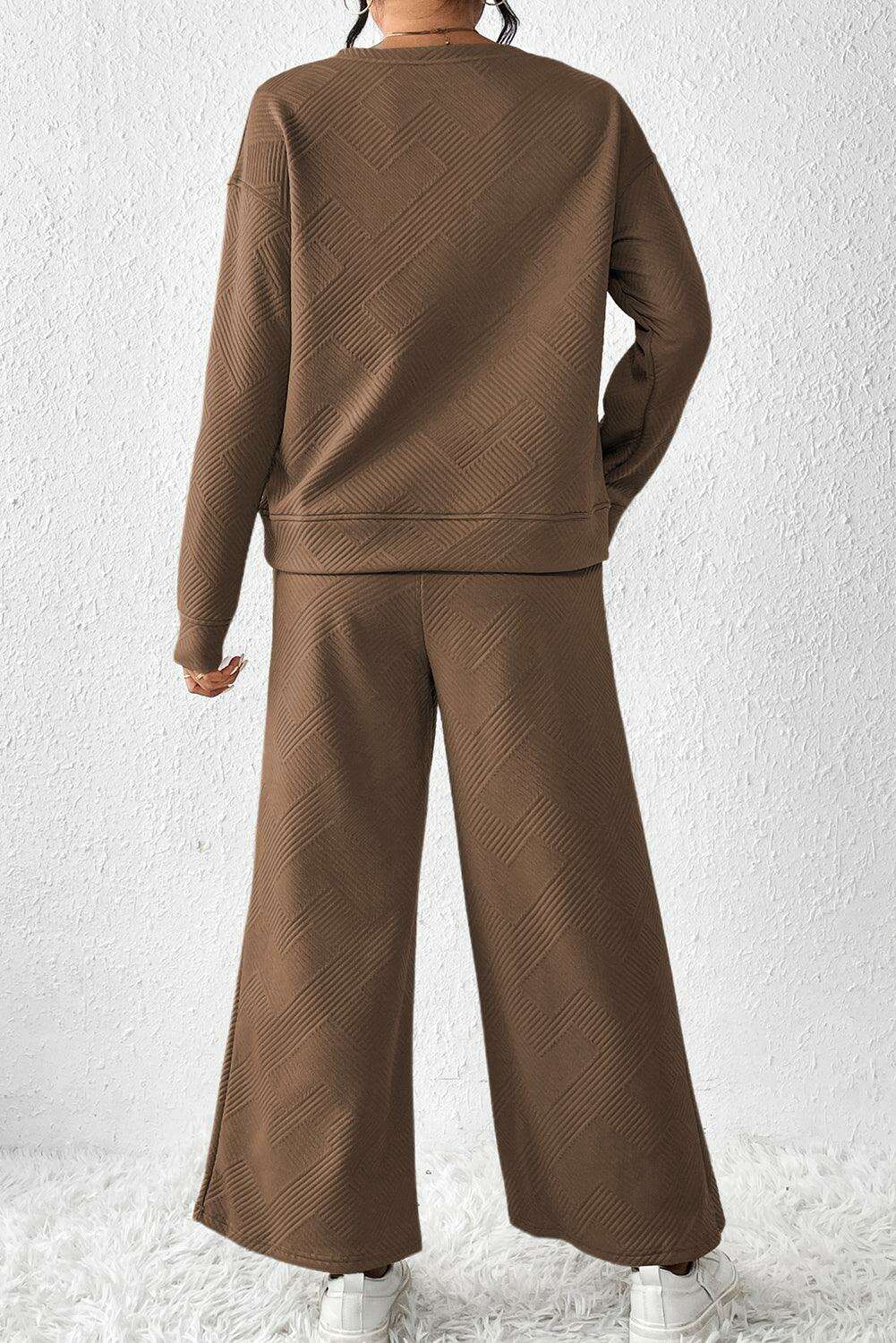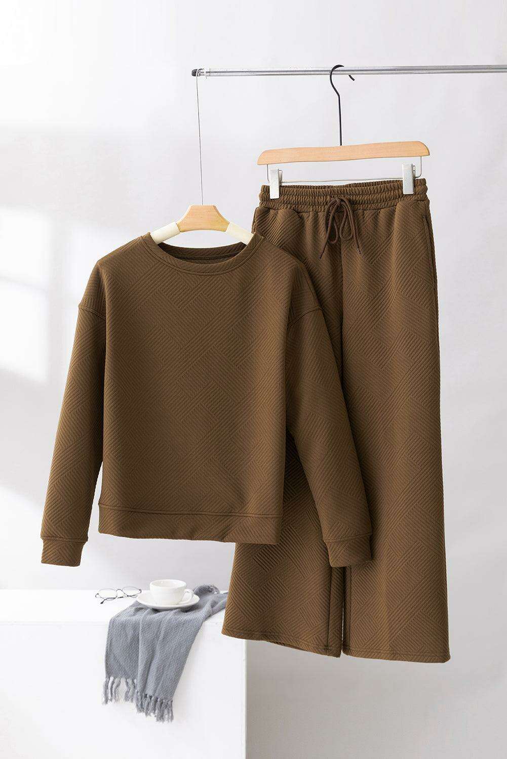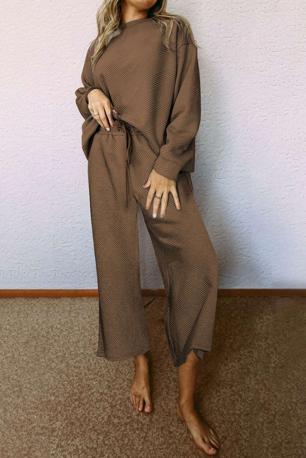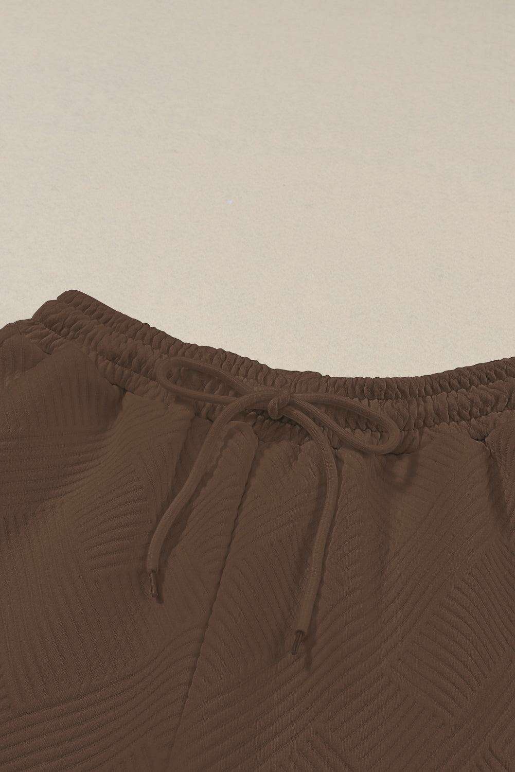 Don't miss the opportunity to elevate your style effortlessly. Embrace the relaxed yet chic vibe of this ensemble and make a fashion statement wherever you go. Choose the Chic Textured Dark Brown Lounge Ensemble for a standout look that combines luxury with leisure.