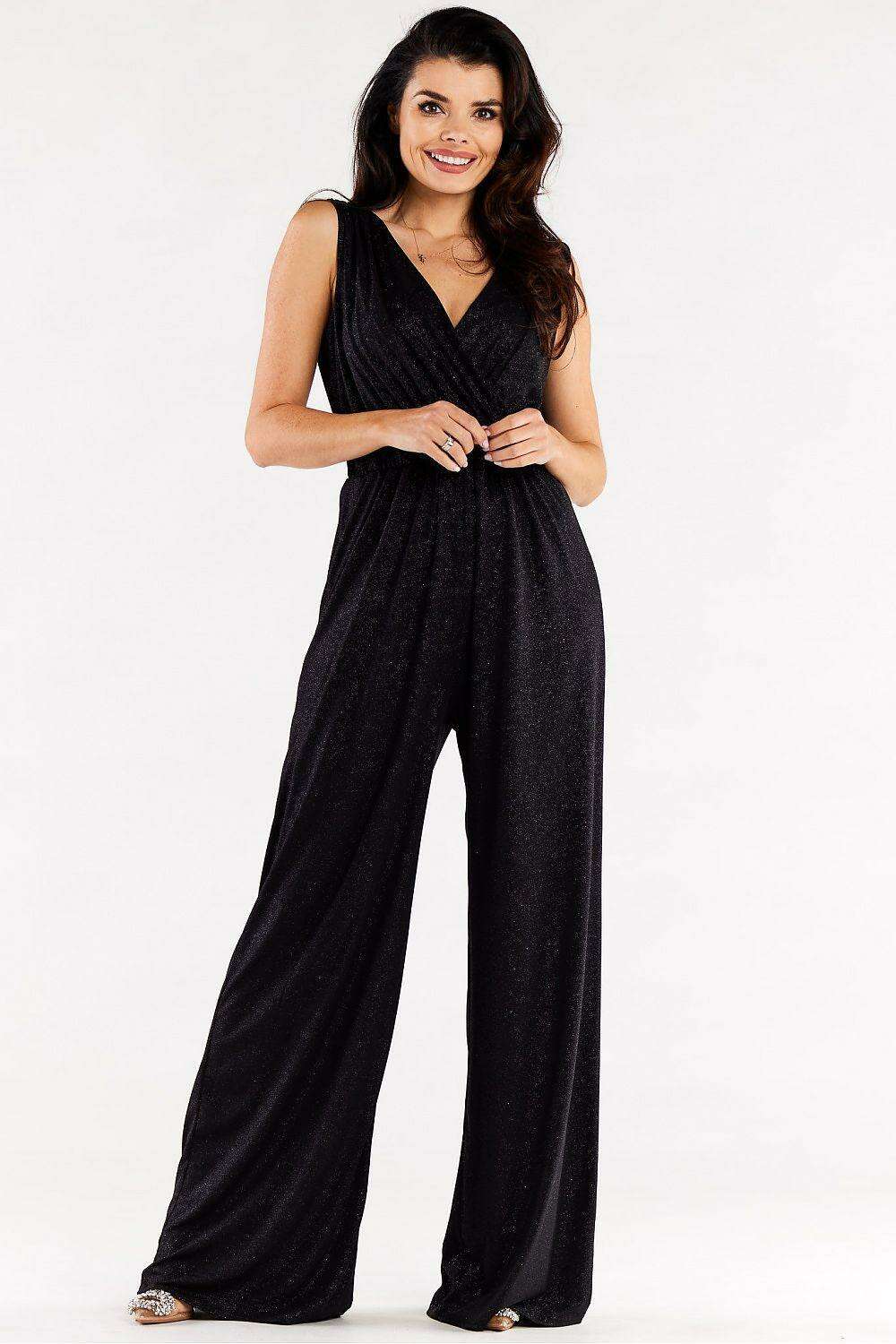 Sophisticated Wide Leg Jumpsuit Ensemble with Stylish Envelope Top - Exquisite Polish Craftsmanship