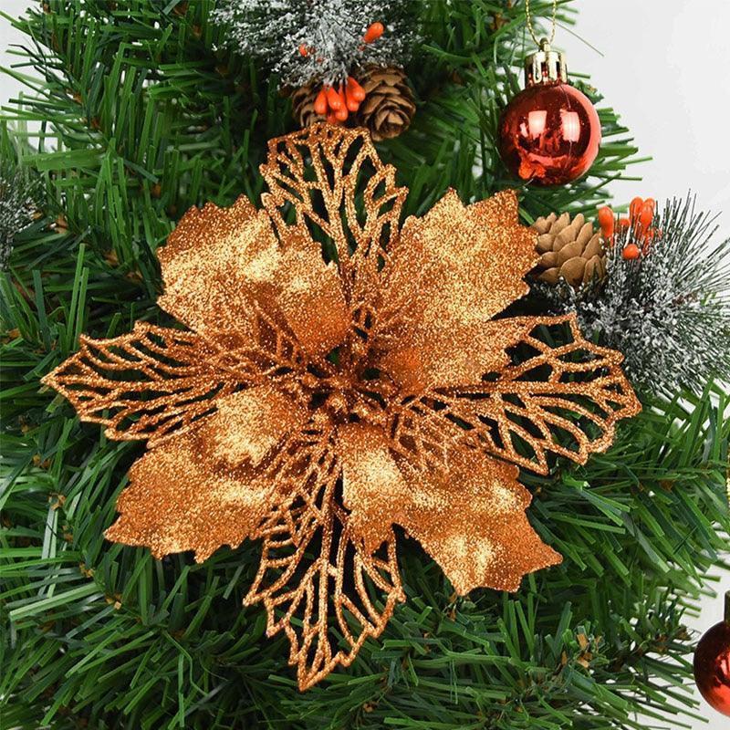 - Set of 5pcs: Includes 5 glitter artificial Christmas flowers
