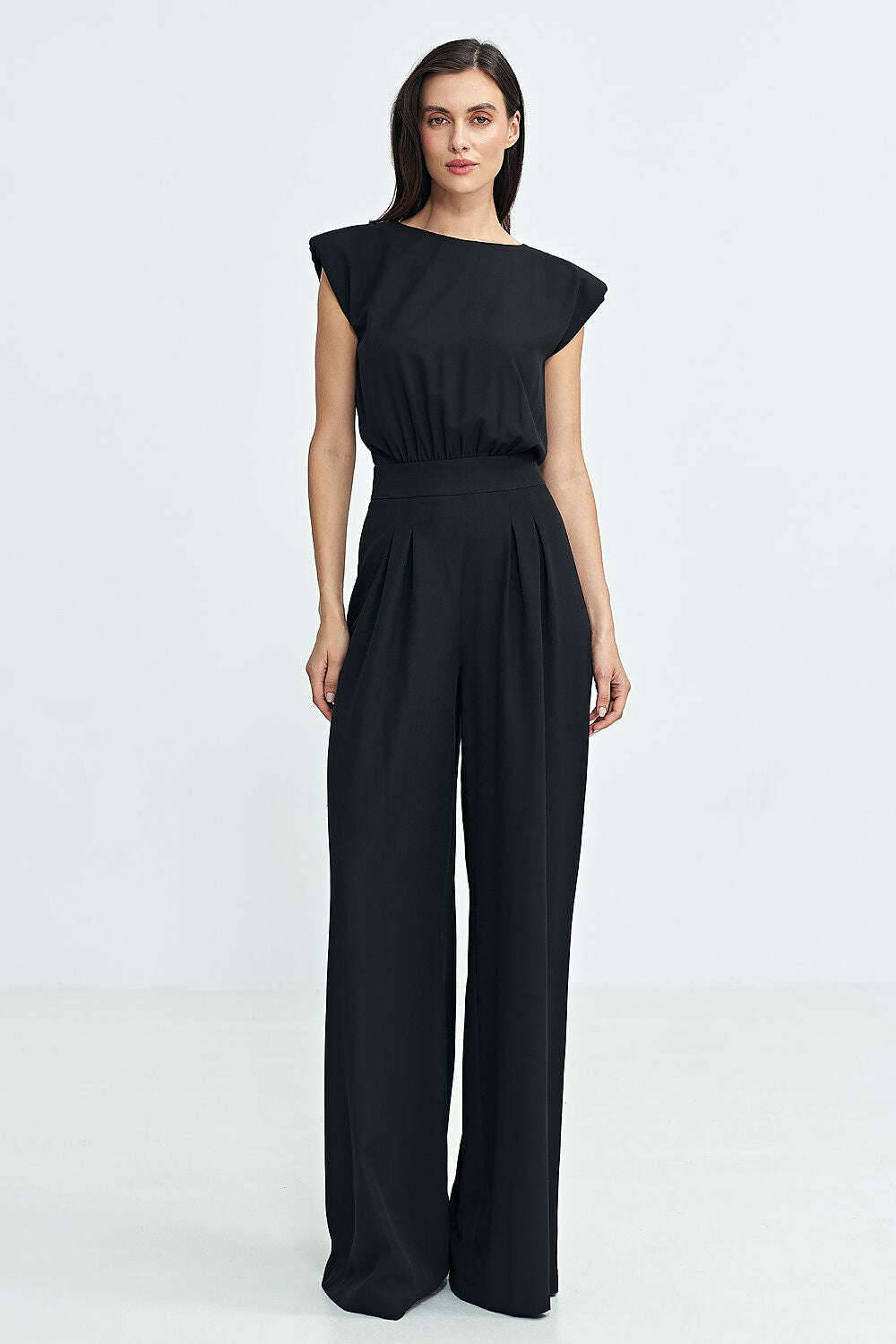 Elevate your wardrobe with the Suit Model 199703—a navy blue jumpsuit crafted for a regular fit that moves with you. The elegant boat neckline subtly emphasizes the collarbone for a refined silhouette.