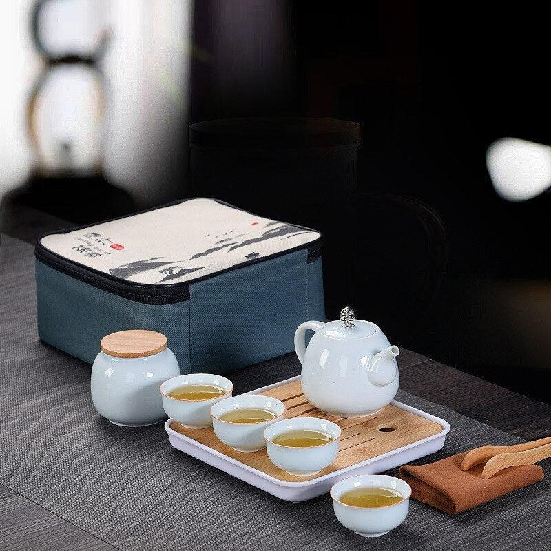 Elegant Portable Tea Set with Xishi Teapot - Serenity for Tea Lovers on the Move