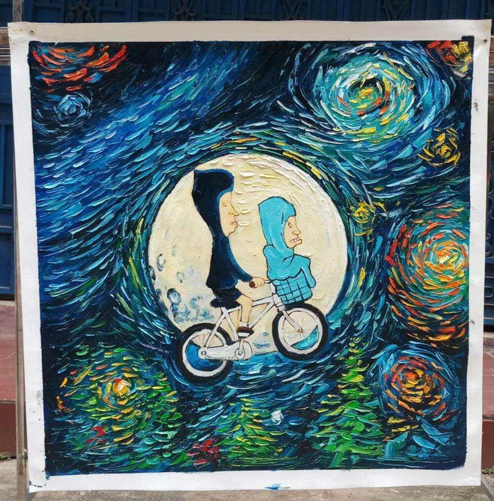 Bring home the whimsical nostalgia and artistic flair of Beavis and Butthead with this exclusive oil painting. It's not just a decorative item; it’s a story, a conversation starter, and a piece that breathes life into your walls. Choose our painting to elevate your home decor with unique artistry that resonates with fans and art lovers alike.