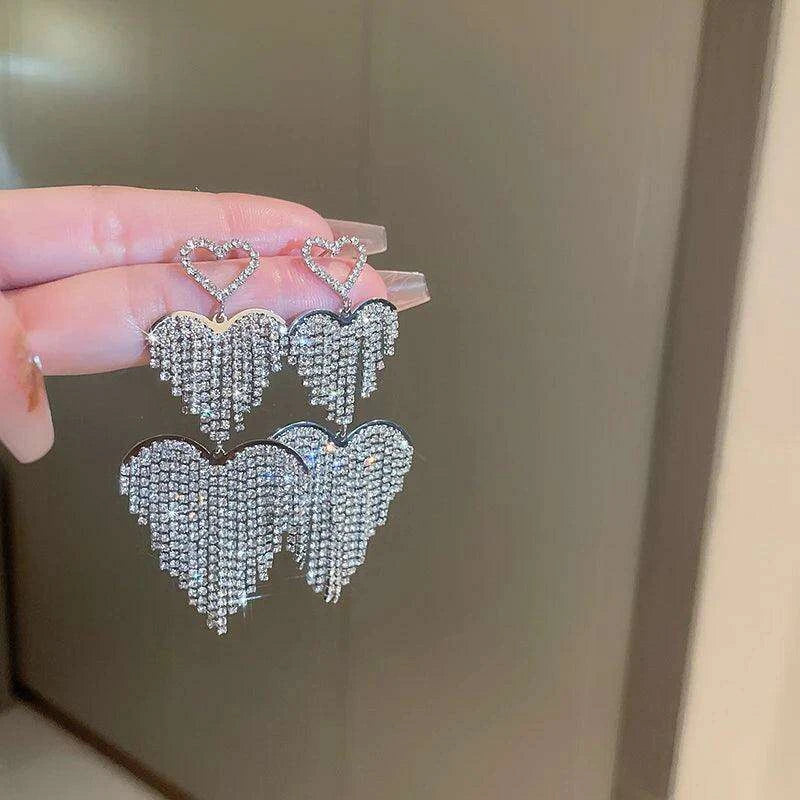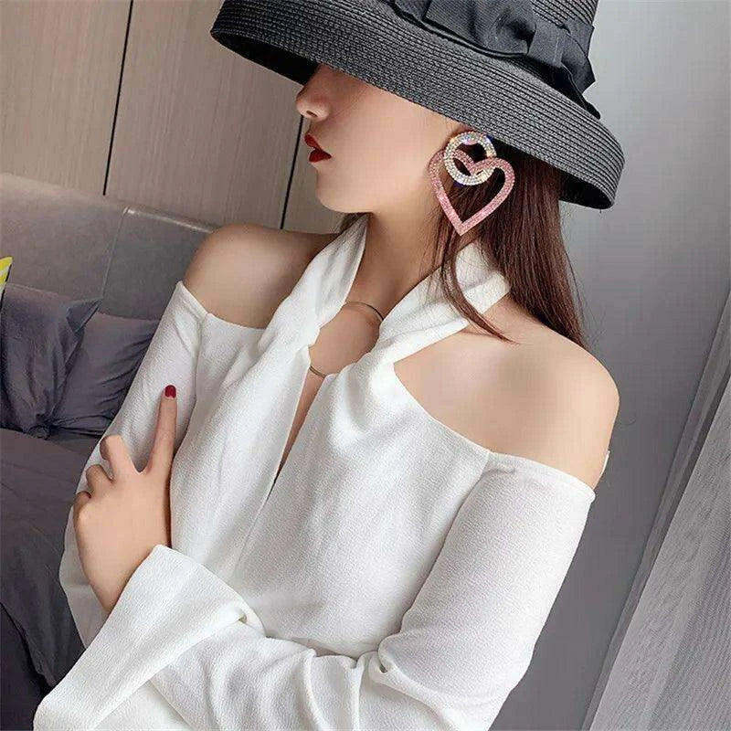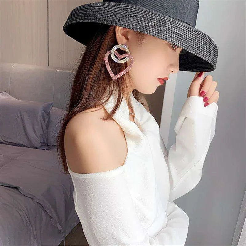Vibrant Heart-Shaped Crystal Drop Earrings - Dazzling Rhinestone Statement Jewelry for Women with Bold Oversized Charm