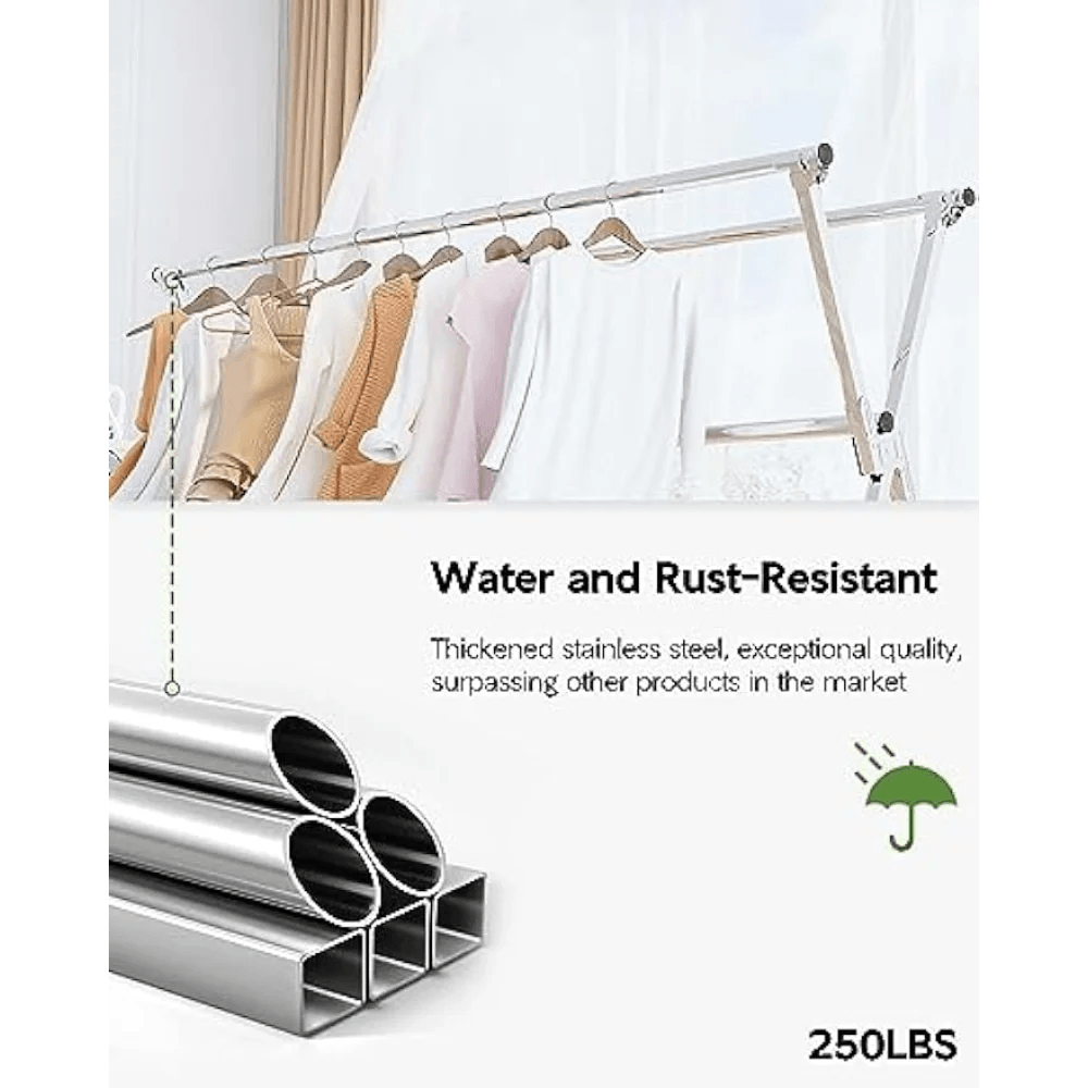 - Personalized Drying Space: Features telescopic rods that allow for a customizable configuration to suit various laundry needs.
