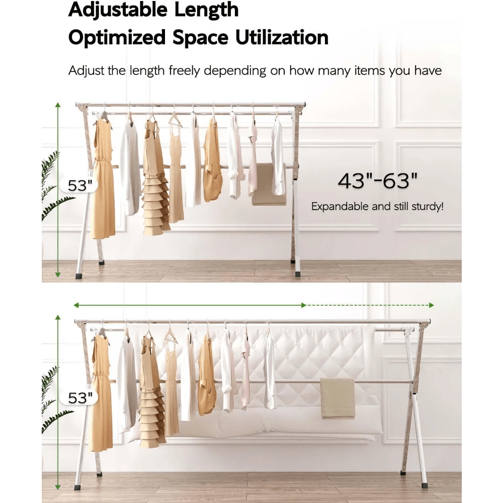 Experience the ultimate in laundry convenience with the Vikaqi Stainless Steel Adjustable Clothes Drying Rack. Designed to cater to all your indoor and outdoor drying needs, this innovative rack is perfect for all seasons.