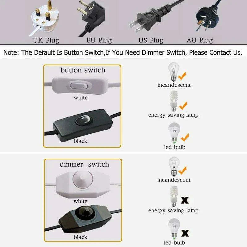 - Plug Options Available: European Plug, US Plug, UK Plug, AU Plug
