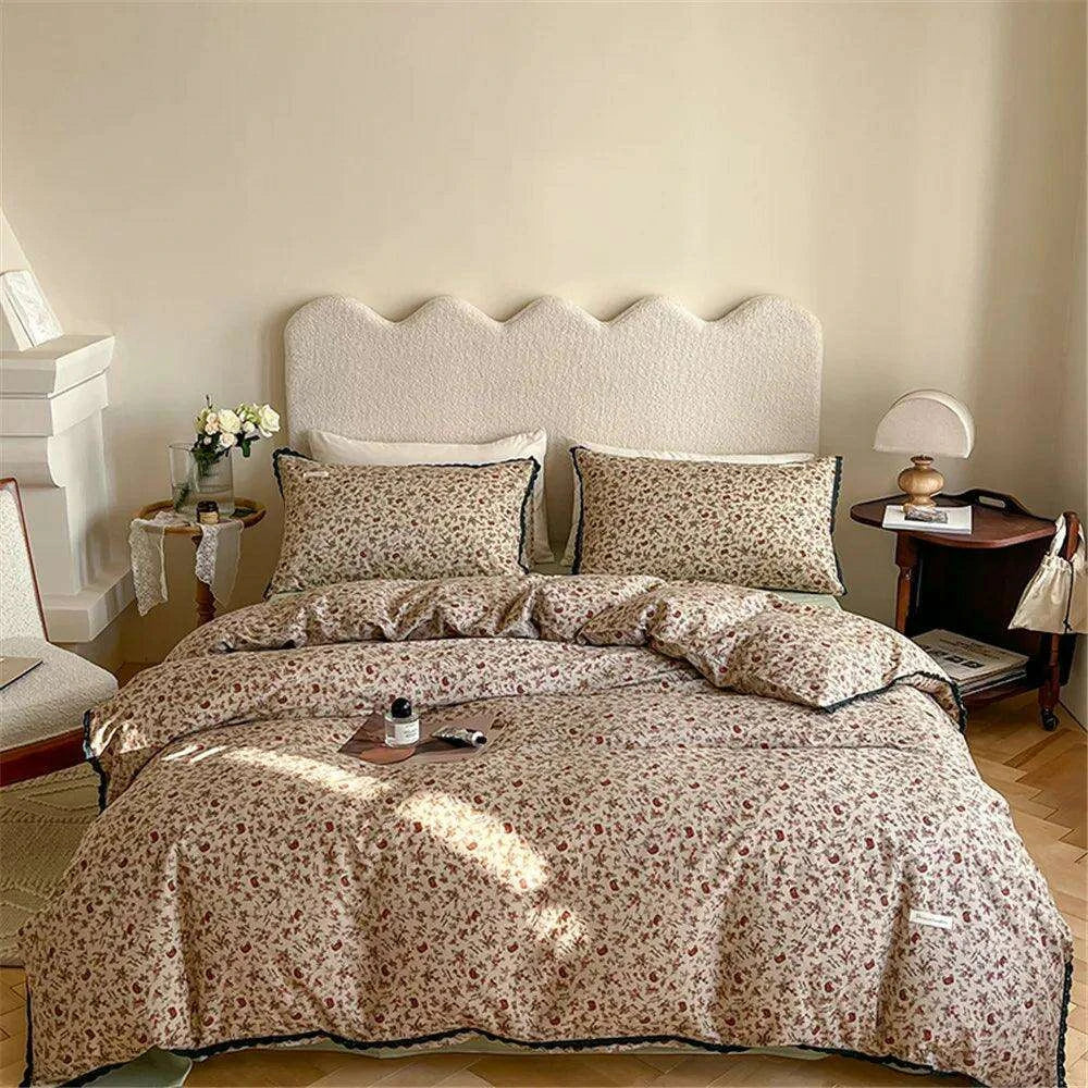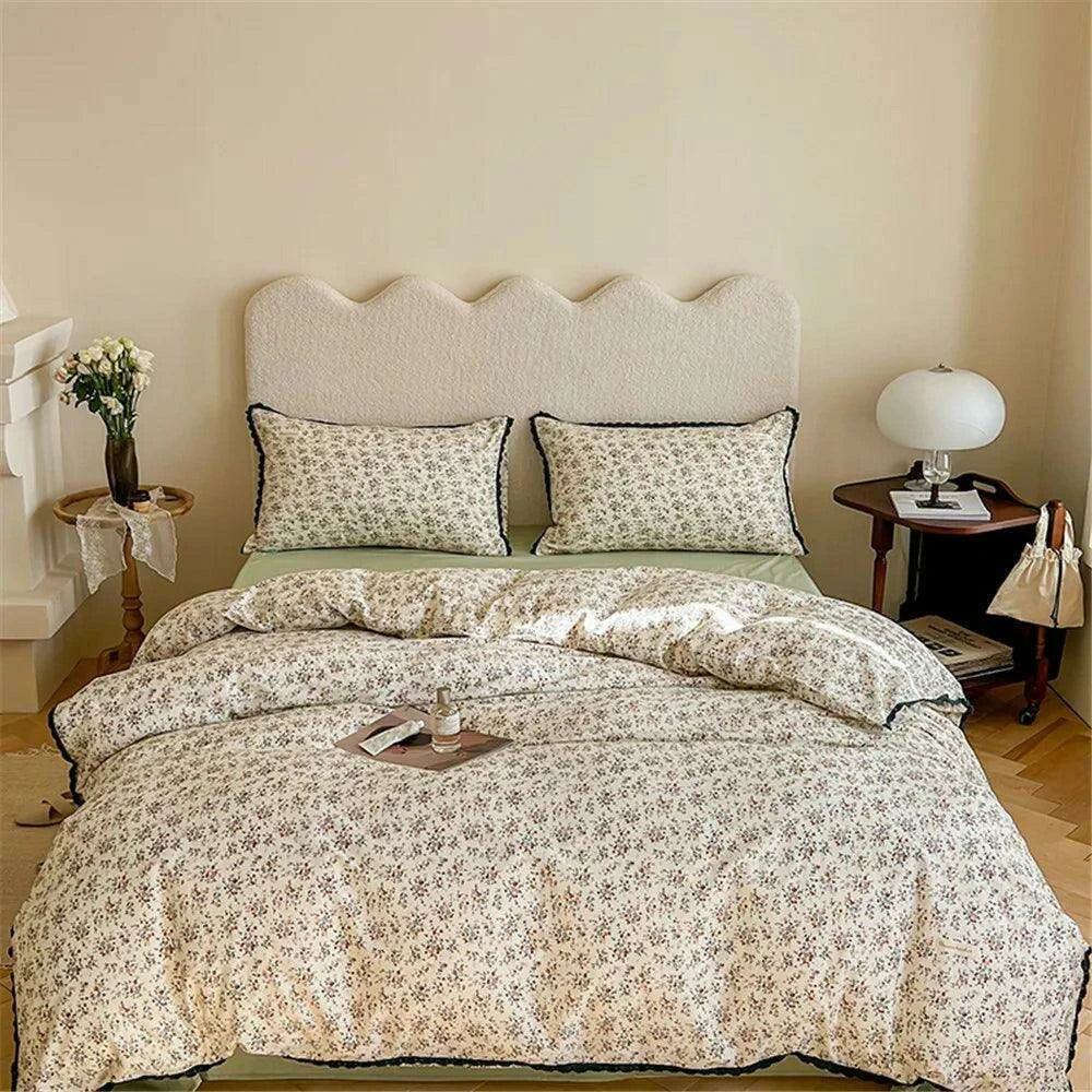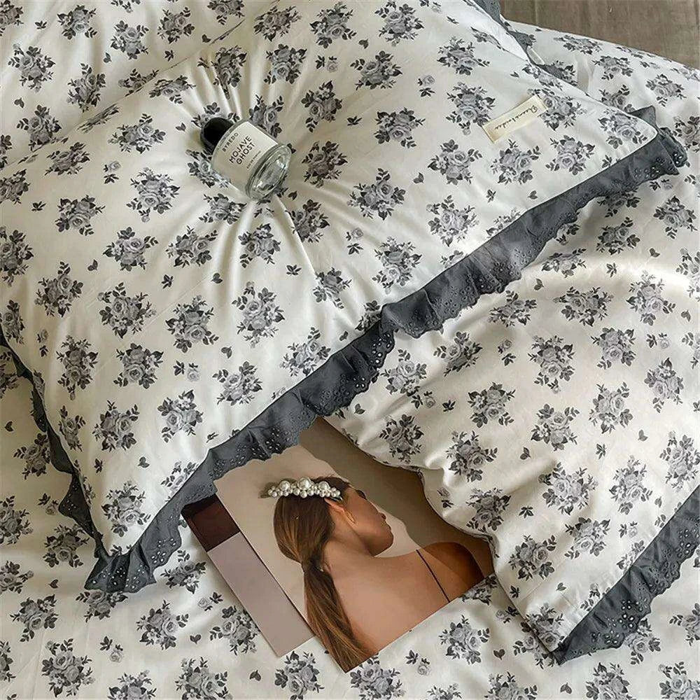 Vintage Lace Floral Egyptian Cotton 4-Piece Bedding Set with Shams