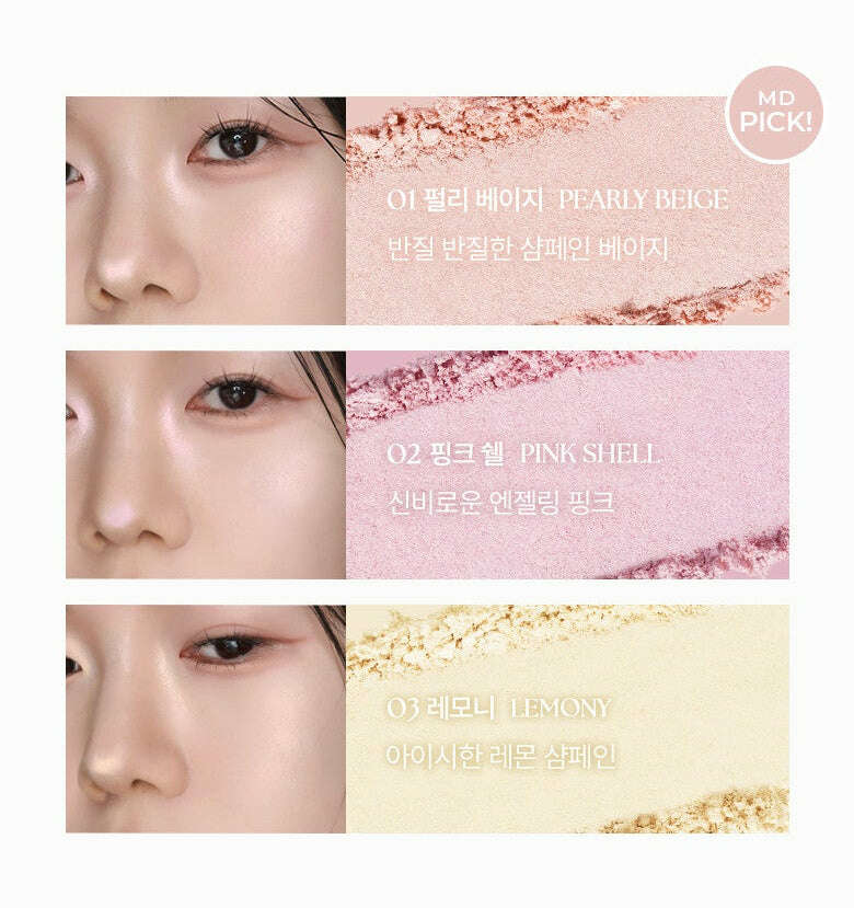 Wakemake Sheer Breeze Highlighter 5g delivers a naturally radiant glow with an airy, ultra-fine pearlized texture that melts seamlessly into the skin.
