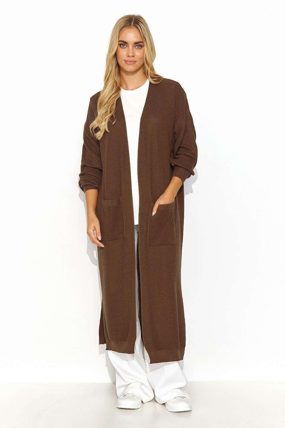 Warm Knit Cardigan with Front Pockets and Stylish Slits