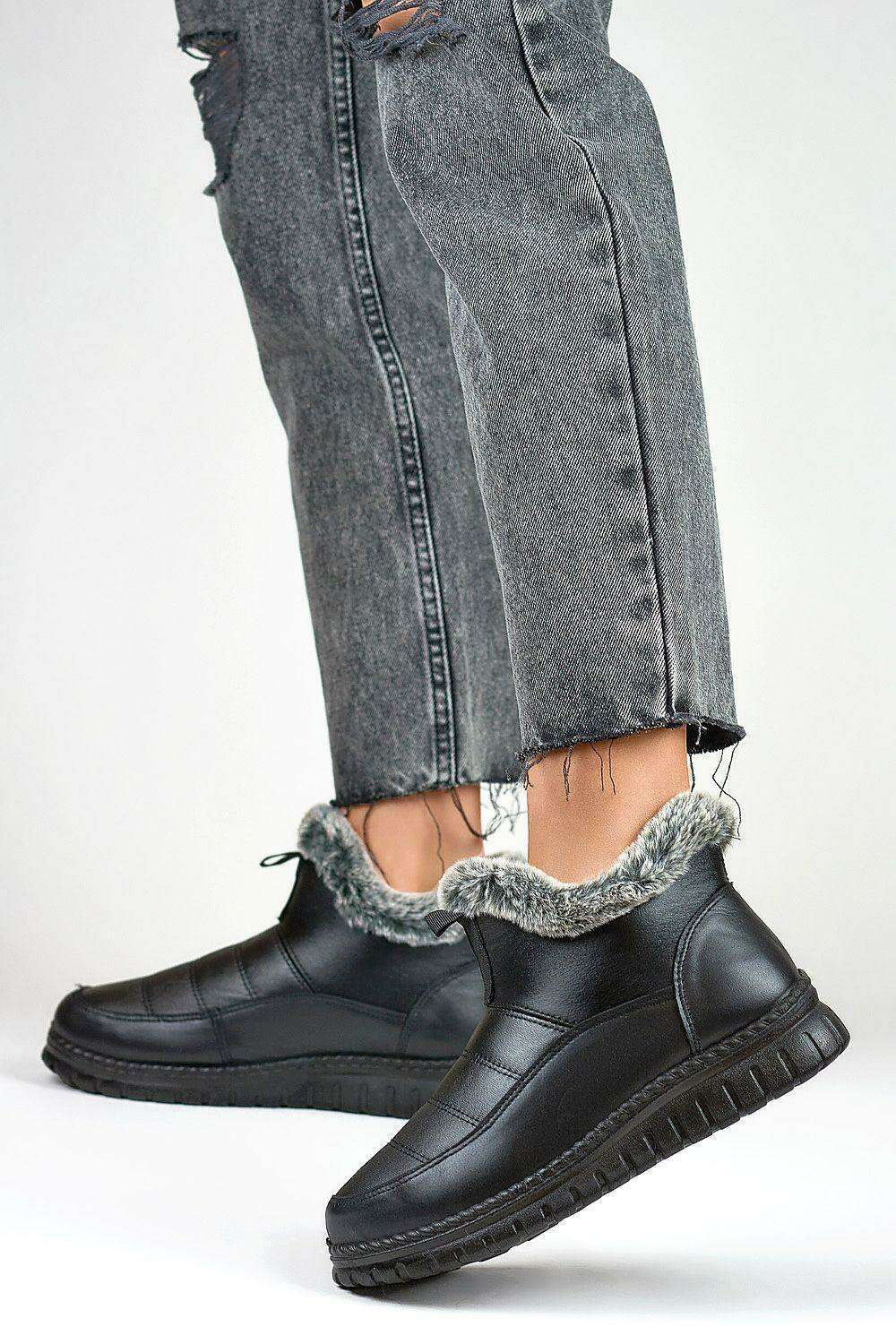 Winter Chic: Women's Faux Leather Fur-Lined Ankle Snow Boots