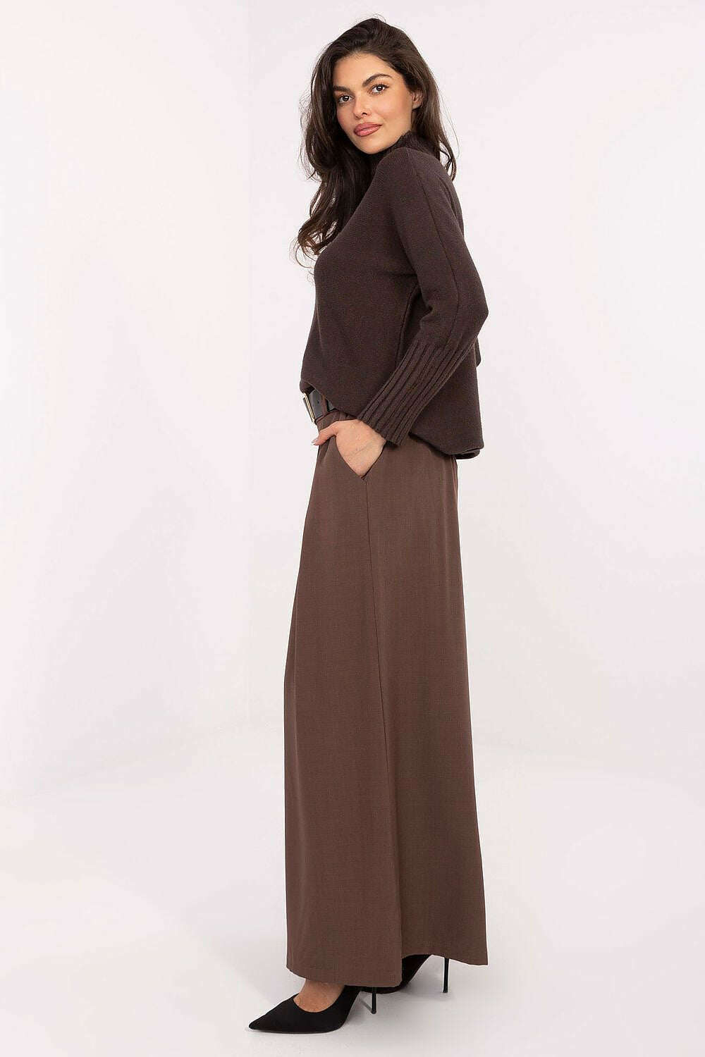 Experience effortless elegance with the Women Palazzo Pants 220025, crafted from a premium viscose and polyester blend for a luxurious drape and all-day comfort. The smooth fabric lends a classic, refined character, while the long, wide legs lengthen the silhouette for a light, feminine look—perfect for both everyday wear and formal occasions.