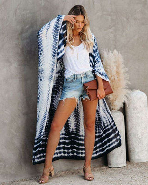 This semi-sheer cardigan is perfect for slipping on after a swim or as a chic layering piece. With its long silhouette and eye-catching tie-dye pattern, it's a must-have for anyone seeking to enhance their bohemian beach style. Stand out among the crowd with this unique cover-up that beautifully balances fashion and functionality.