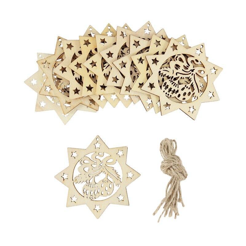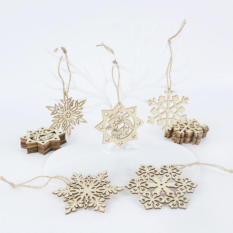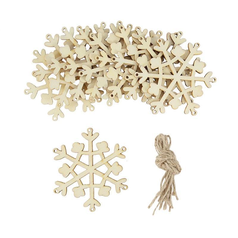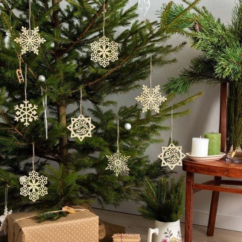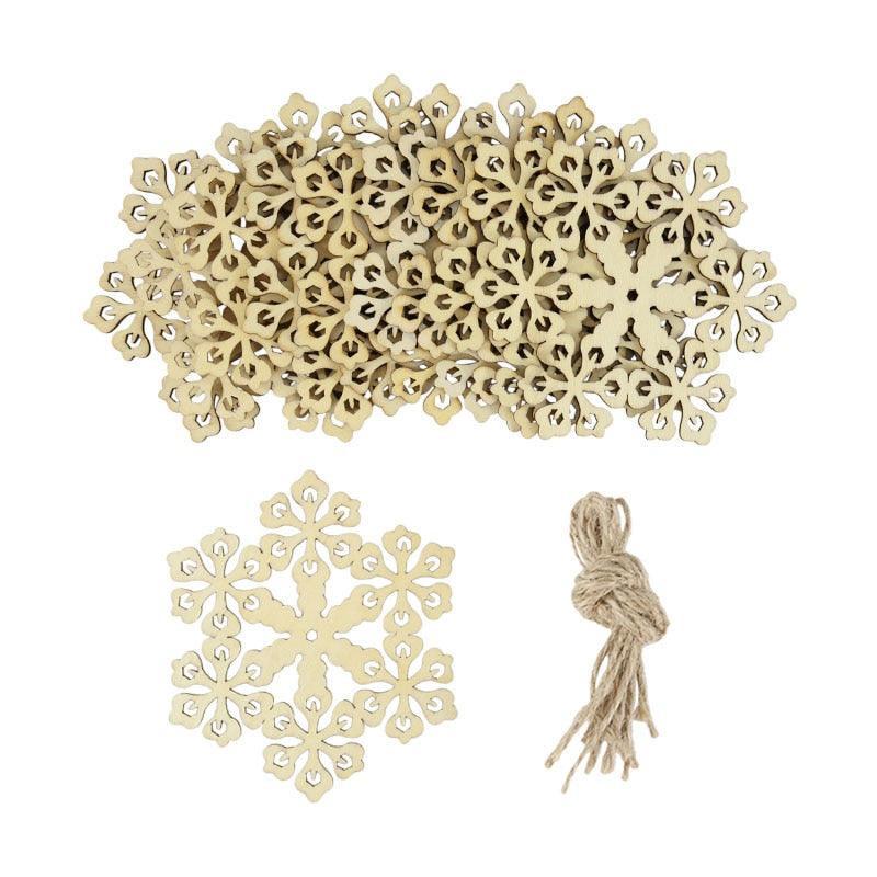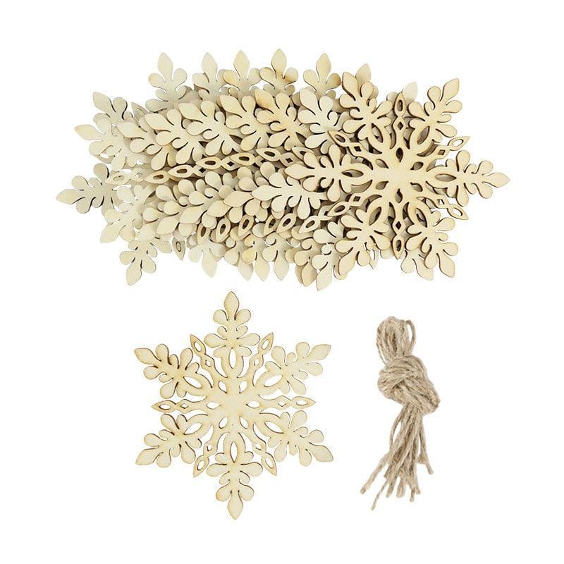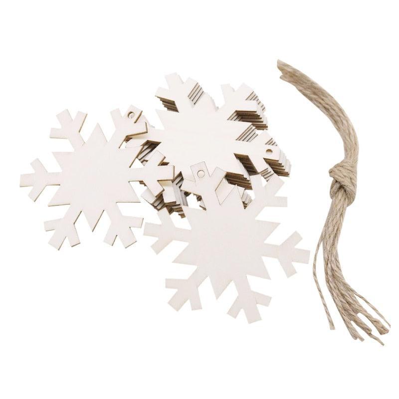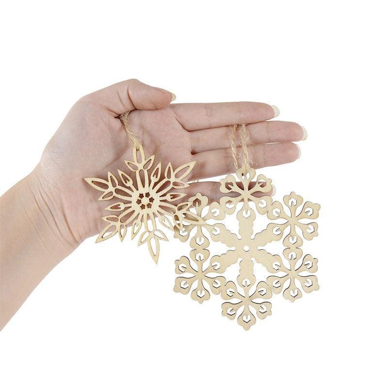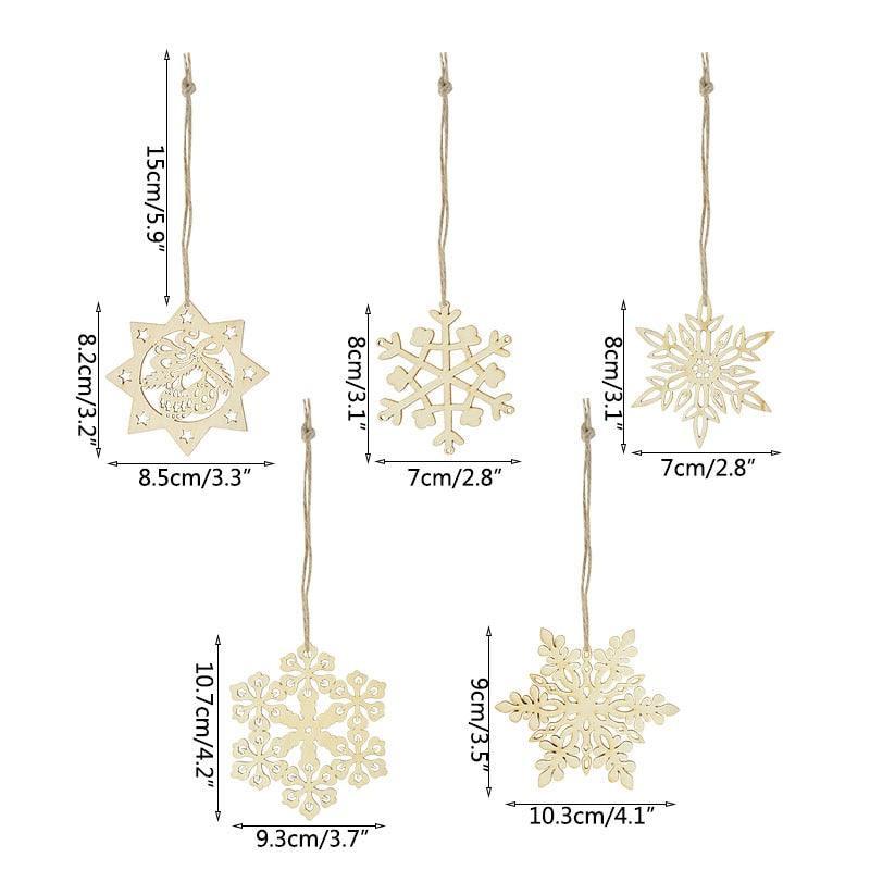 Wooden Snowflake Chip Ornaments - Cheerful Set of 10 for Holiday Celebrations