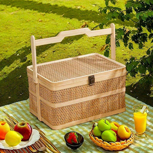 Eco-Friendly Handwoven Bamboo Basket for Picnics and Storage - 12.99" x 7.09" x 5.12"