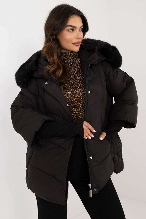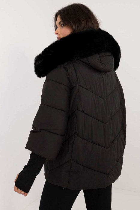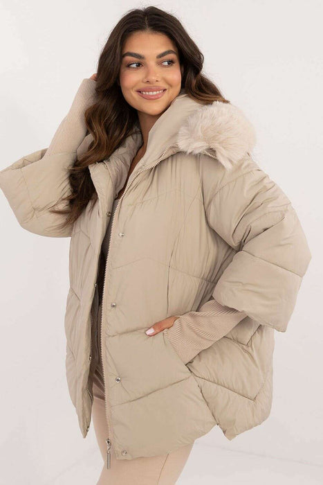 Women's quilted jacket in casual style, ideal for everyday outings in the colder days of autumn and winter. Made of polyester, it features synthetic insulation for warmth and comfort. The smooth pattern and stylish quilting give the jacket an elegant yet casual feel. The jacket has a standard length and a hood trimmed with detachable fur, allowing you to customize the look to suit the occasion or the weather. Long sleeves finished with wide ribbed cuffs provide additional protection from the cold and wind. A zipper and snap closure ensures effective protection from the cold, while slip pockets offer practical space for small items. The inner lining enhances comfort, making the jacket ideal for everyday wear.