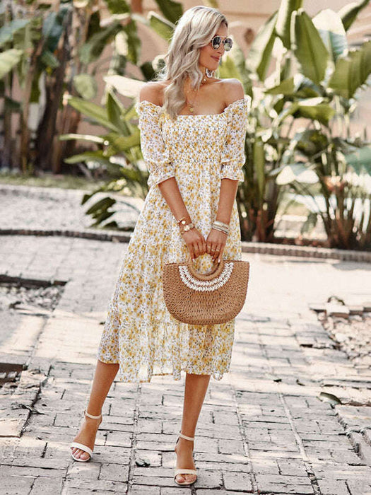 Step into spring and summer with our stunning Puff Sleeve Narrow Waist Large Skirt Floral Print Dress. This enchanting piece combines elegance and comfort, making it the perfect choice for garden parties, brunch dates, or leisurely strolls in the park. With its delightful floral print and flattering silhouette, this dress is designed to enhance your natural beauty and make you feel like the best version of yourself.