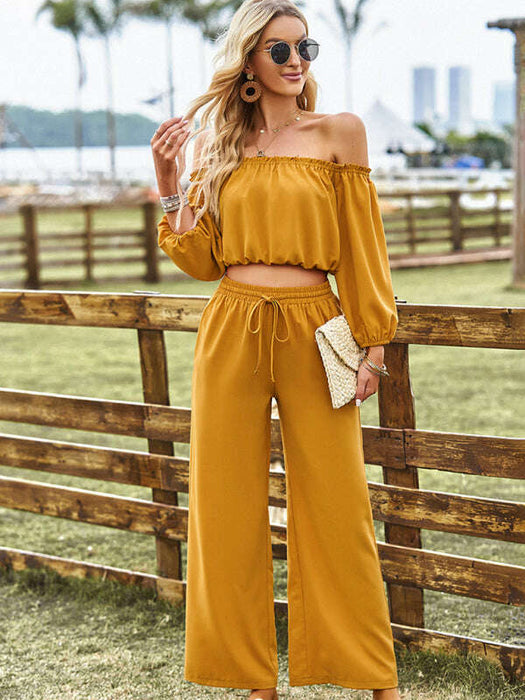 Women's casual sexy tube top top wide-leg trousers two-piece set