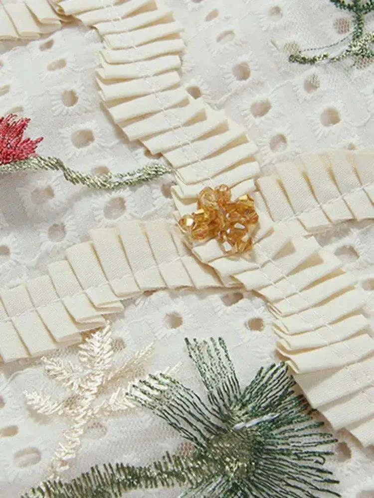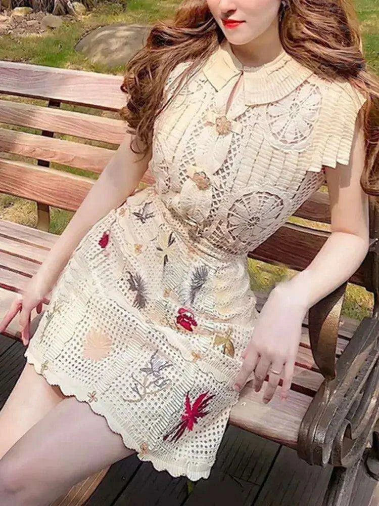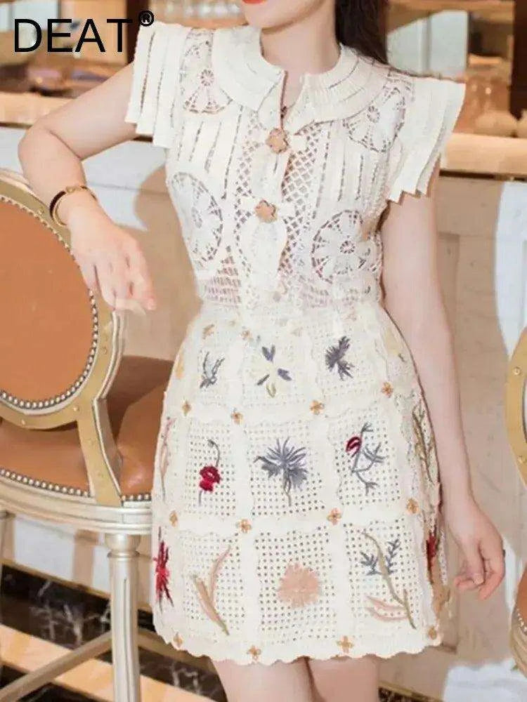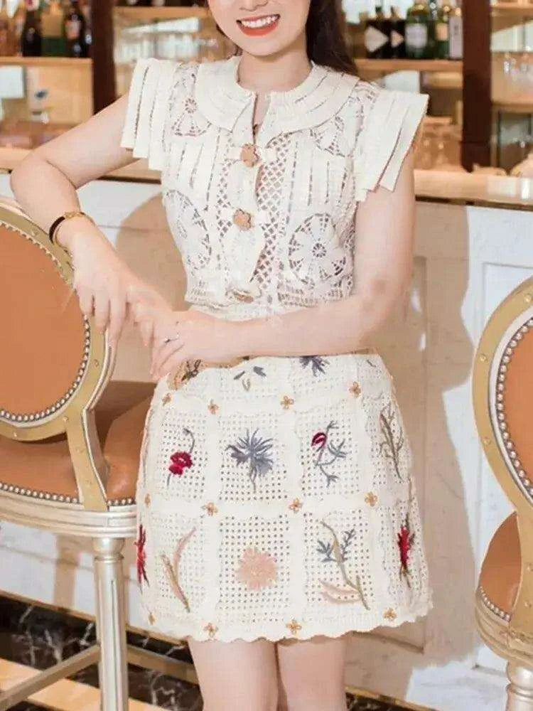 2-Piece Embroidered O-Neck Top and Short Skirt Set for Women