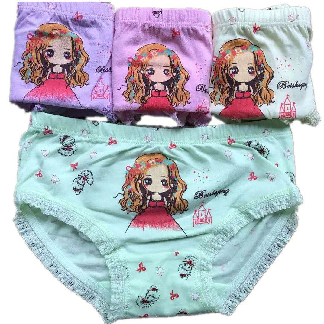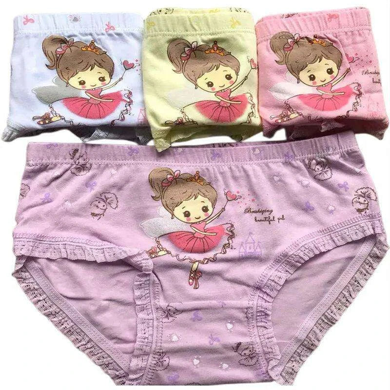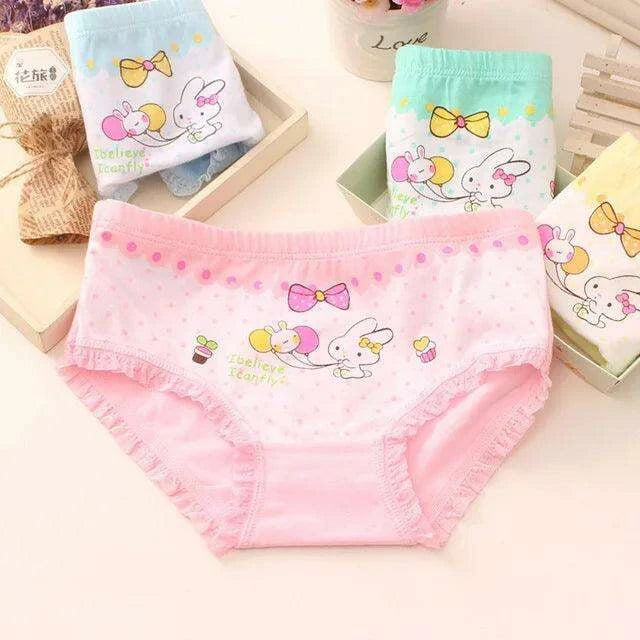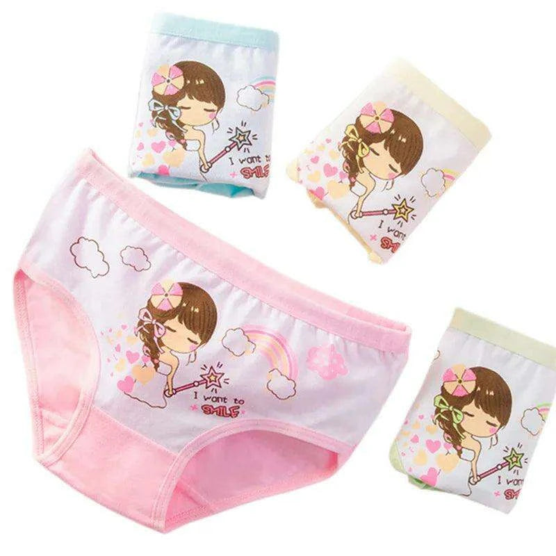 4 pcs Girls' Cotton Briefs Collection - Soft, Breathable & Playful Patterns for Kids